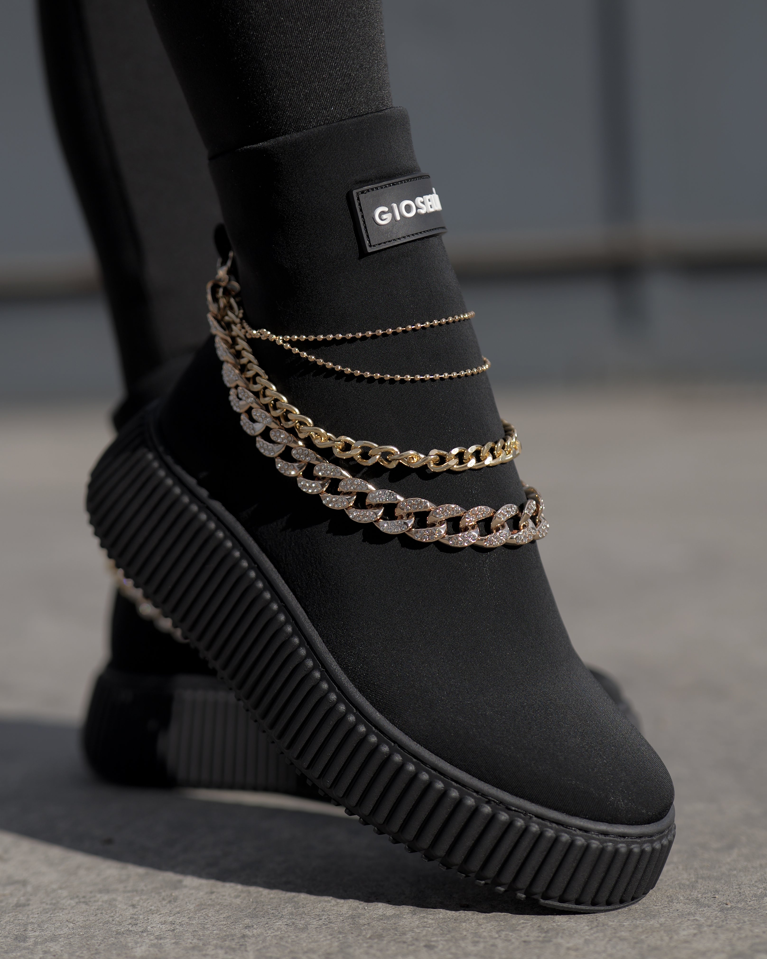 - Tomaia in tessuto elasticizzato – Avvolge il piede come una seconda pelle, adattandosi perfettamente alla forma per un fit impeccabile.