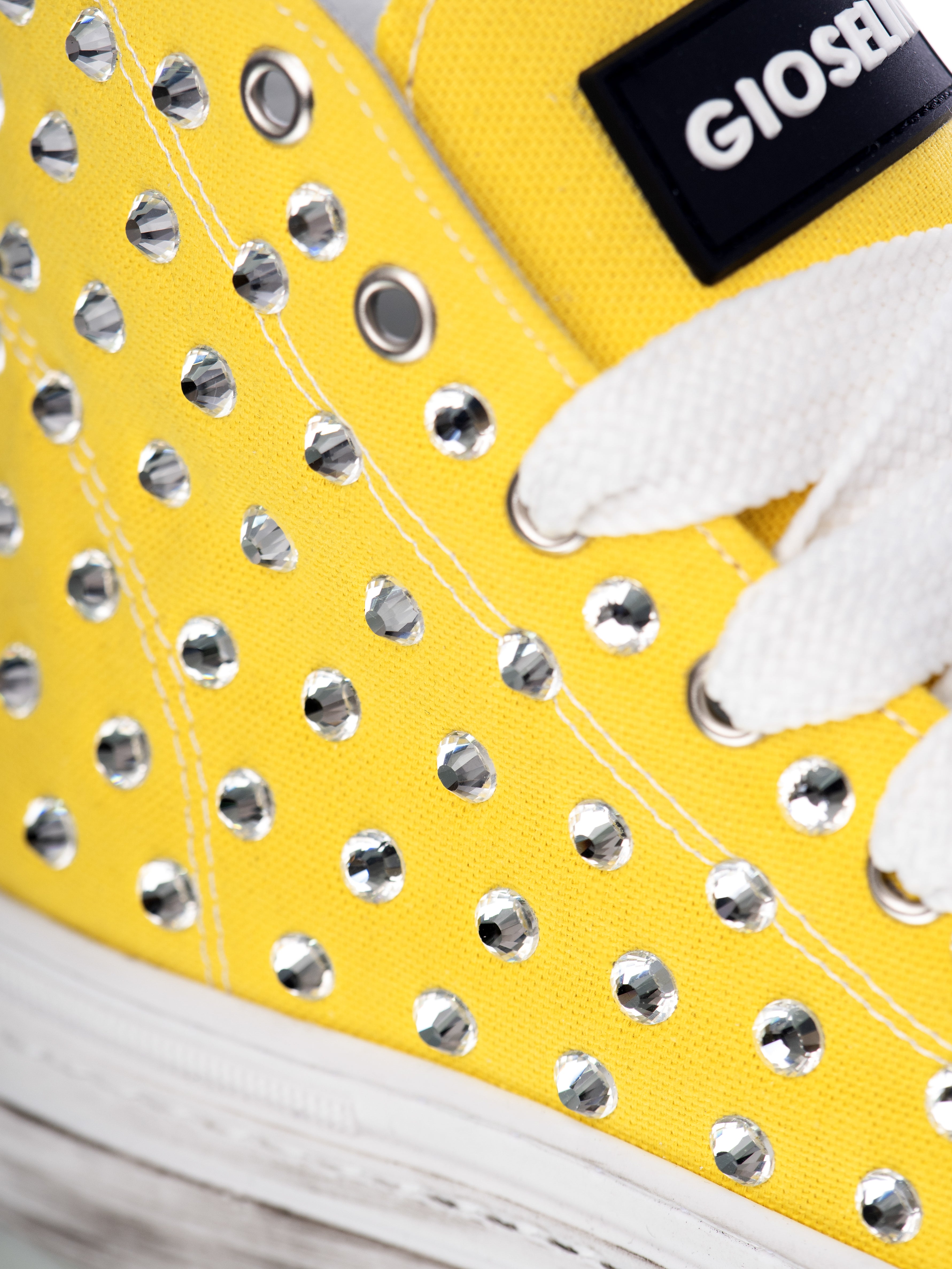 Abbinala a jeans, tute o look streetwear per un outfit che sprigiona carattere e originalità. Con Play Diamond Giallo, ogni passo è pura energia!