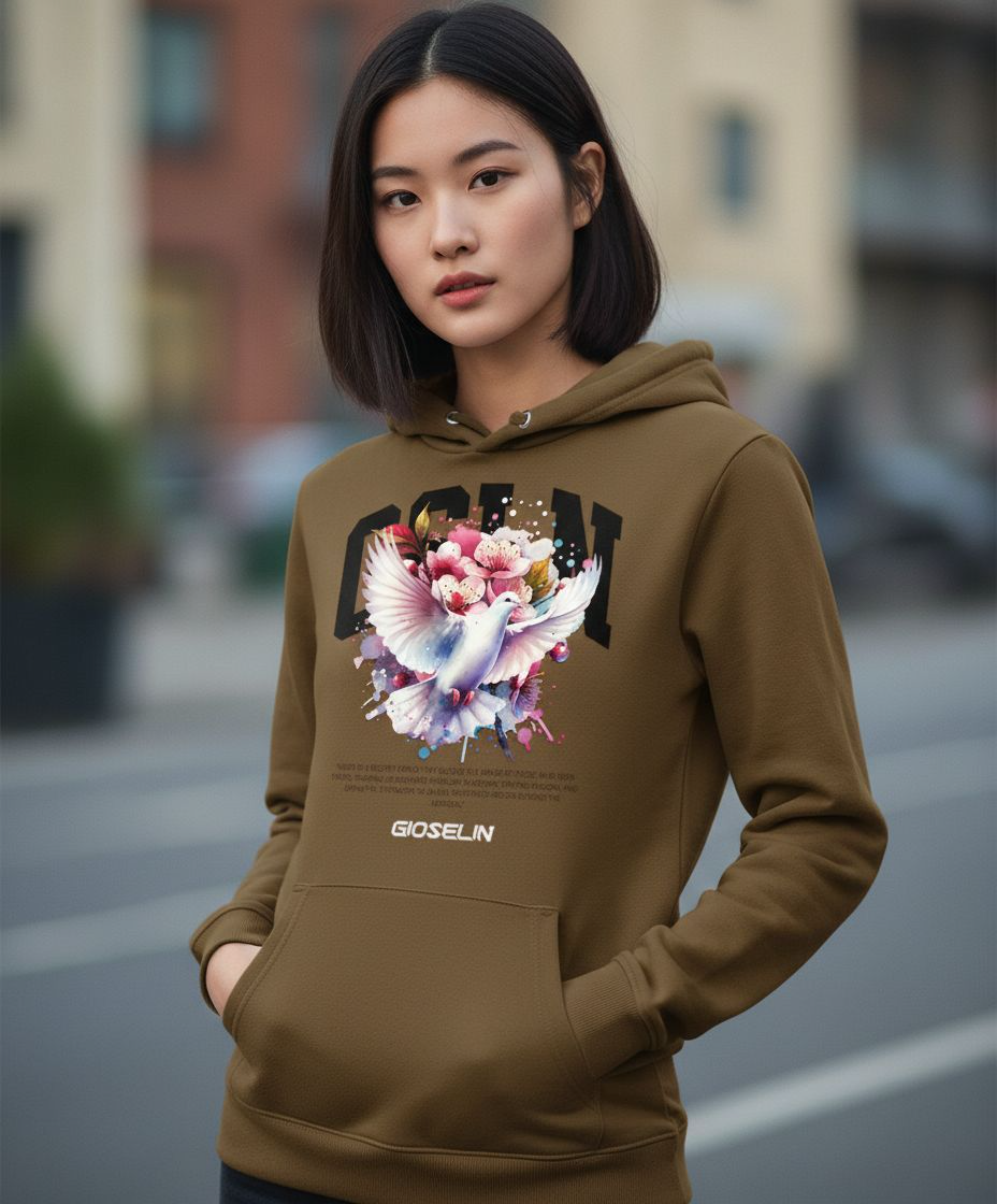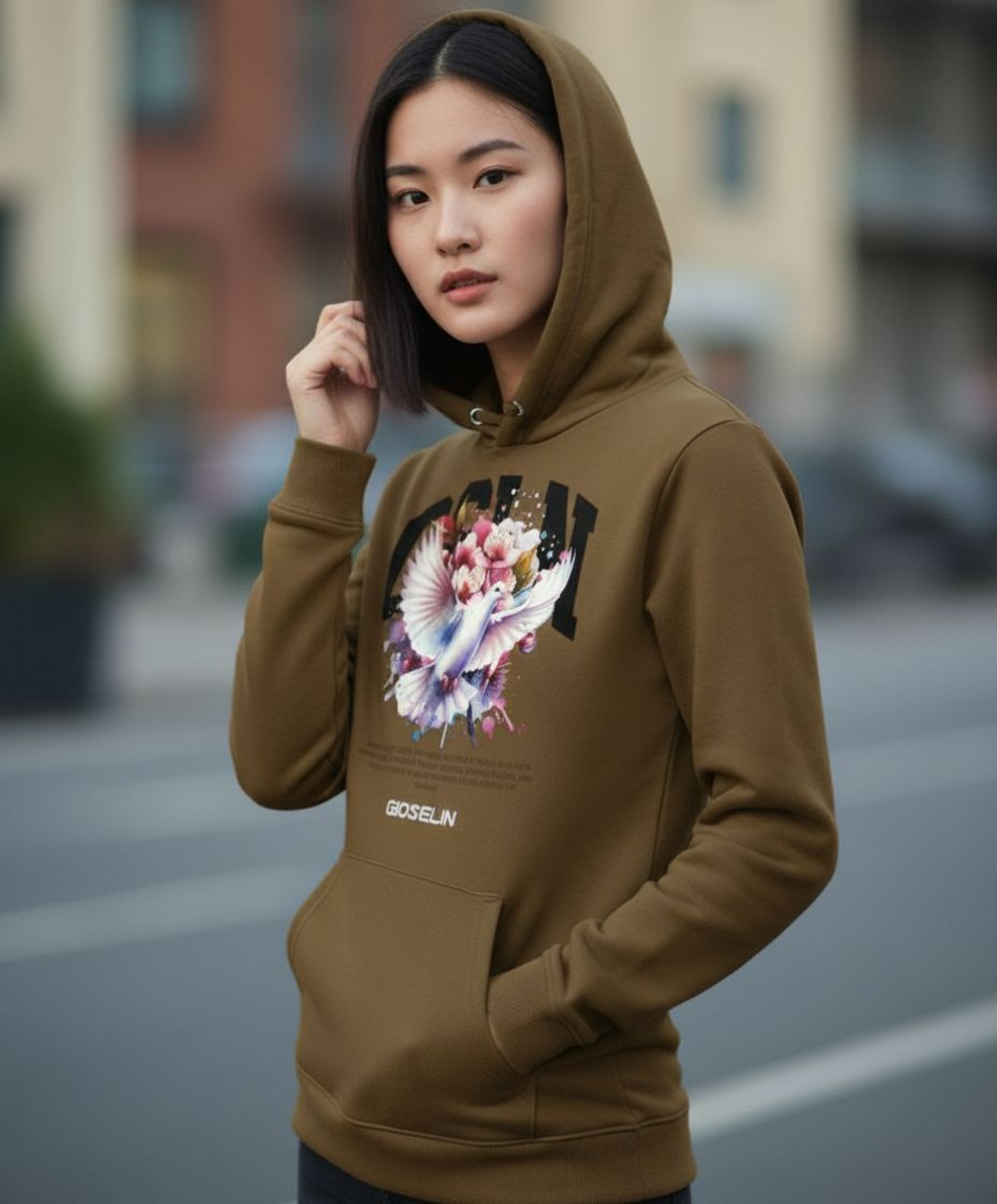 Il design è valorizzato dalla stampa centrale esclusiva, con la colomba bianca in volo tra fiori e colori, simbolo di speranza, rinascita e forza interiore. Un dettaglio che dona alla felpa non solo carattere estetico, ma anche un significato profondo, trasformandola in un capo che racconta una storia.