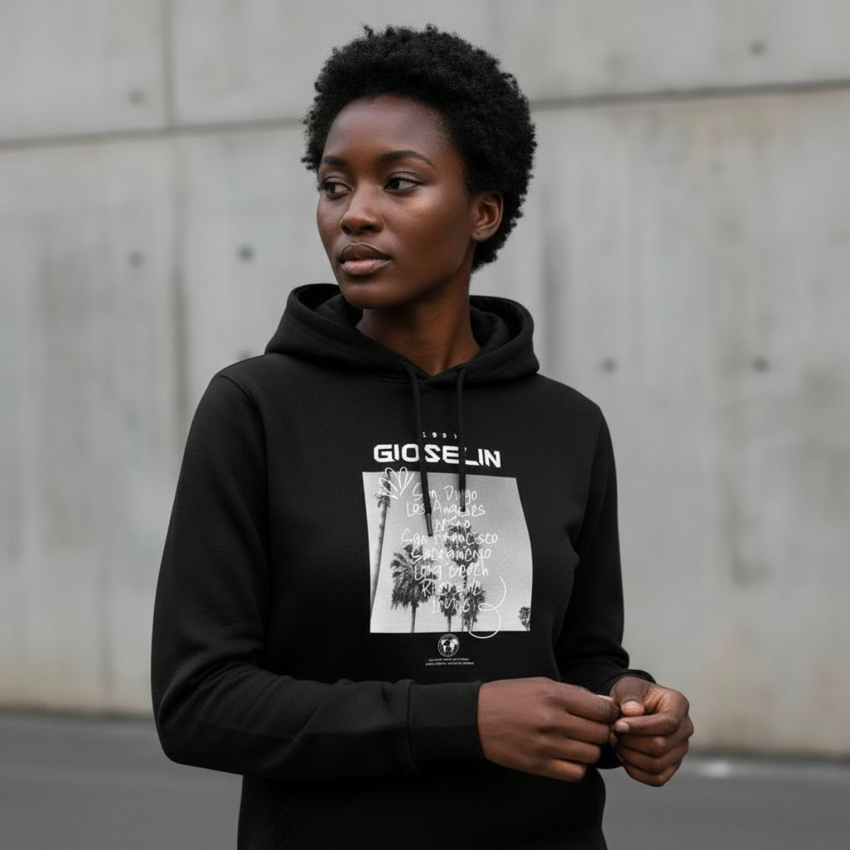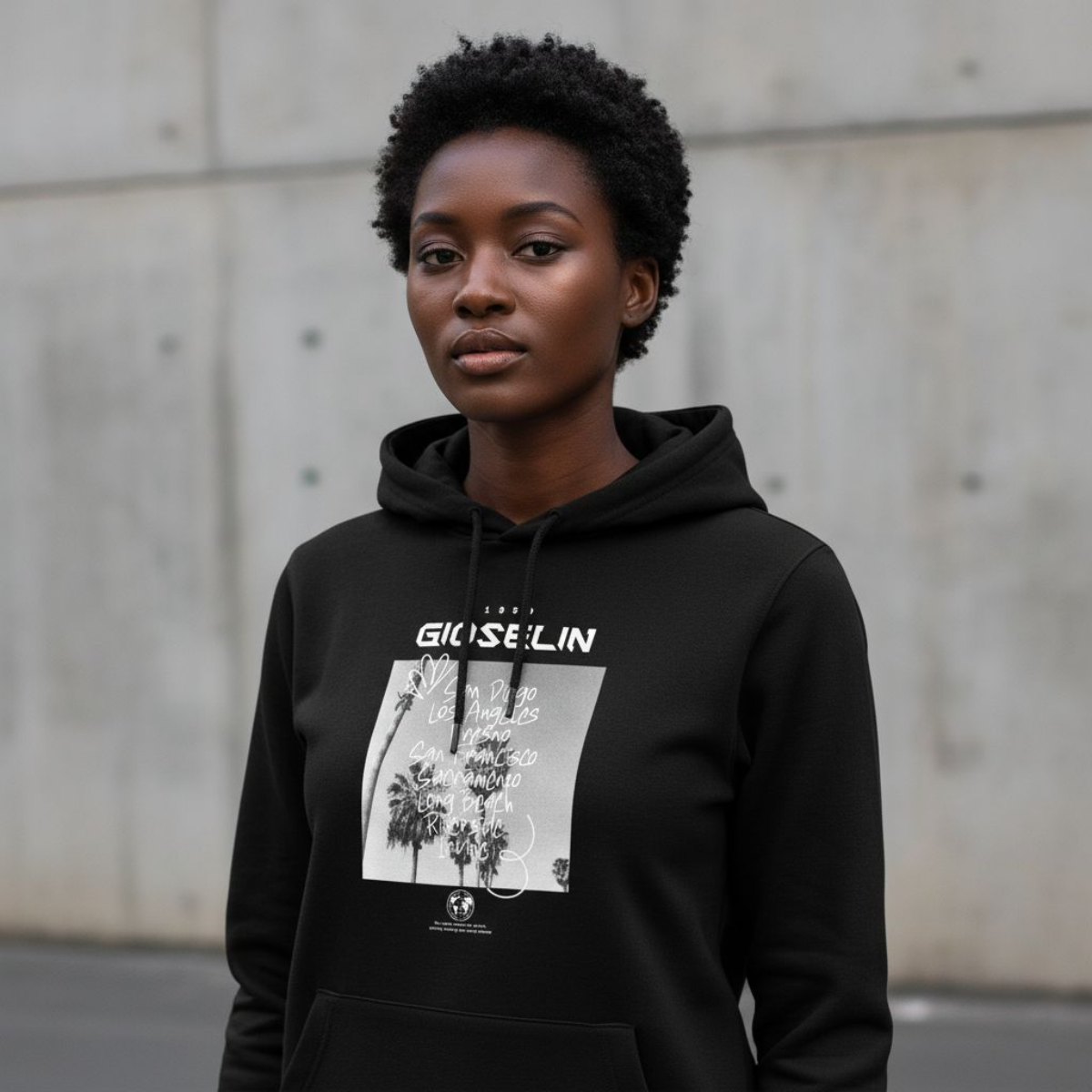 Il design è arricchito dalla stampa centrale esclusiva, che richiama i grandi nomi delle città californiane e lo spirito del viaggio. Un motivo che racconta la voglia di movimento, di scoperta e di lasciare il proprio segno nel mondo, trasformando una felpa casual in un vero manifesto di libertà e personalità.