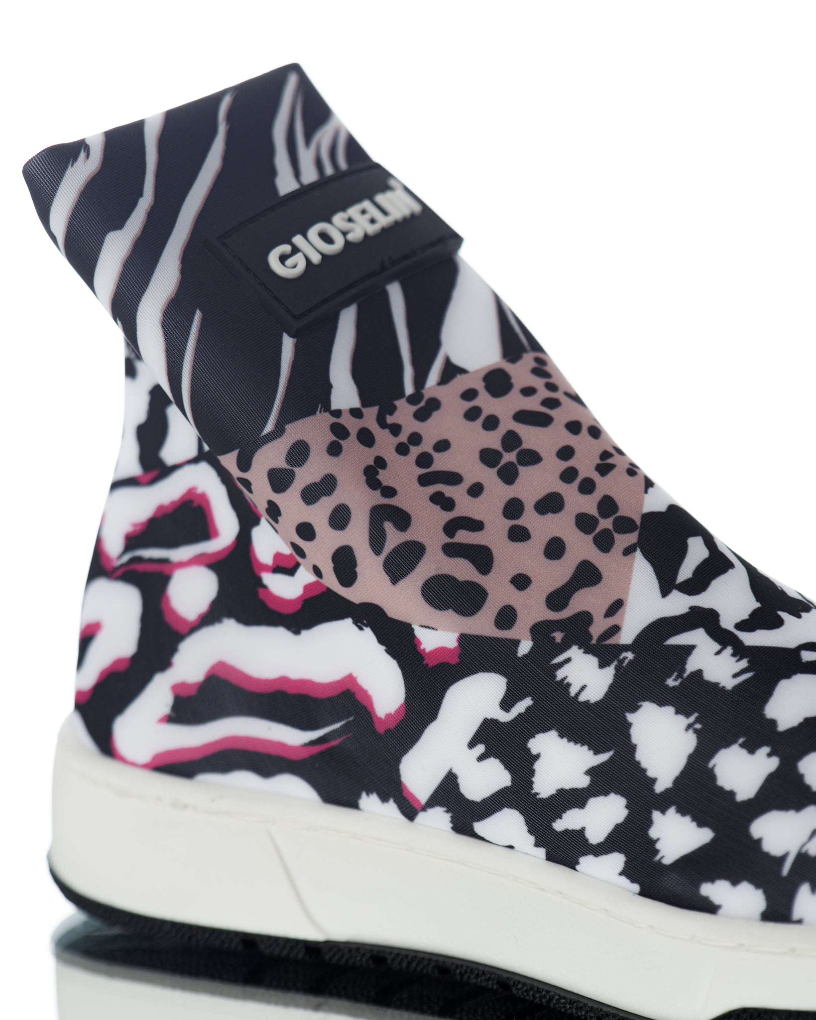 Design Selvaggio : Il modello Light Animalier Baby si distingue per la sua fantasia animalier che combina motivi leopardati, zebrate e maculati in un mix di colori audaci come il bianco, nero e tocchi di rosa. Un look che fa risaltare la personalità e il carattere di chi lo indossa.