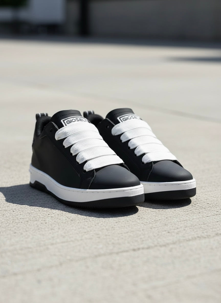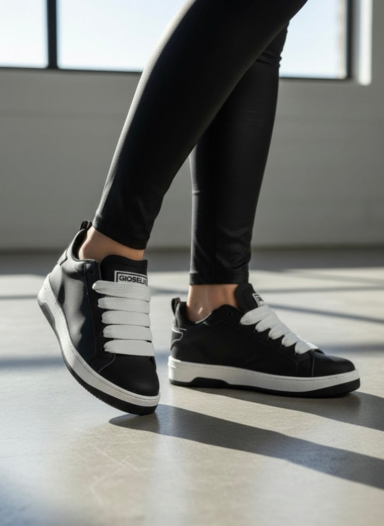 Prima Black è l’espressione più intensa dell’identità Gioselin. Una sneaker che trasforma il minimalismo in potenza visiva, pensata per chi ama distinguersi senza ostentare, attraverso uno stile essenziale ma carico di personalità.