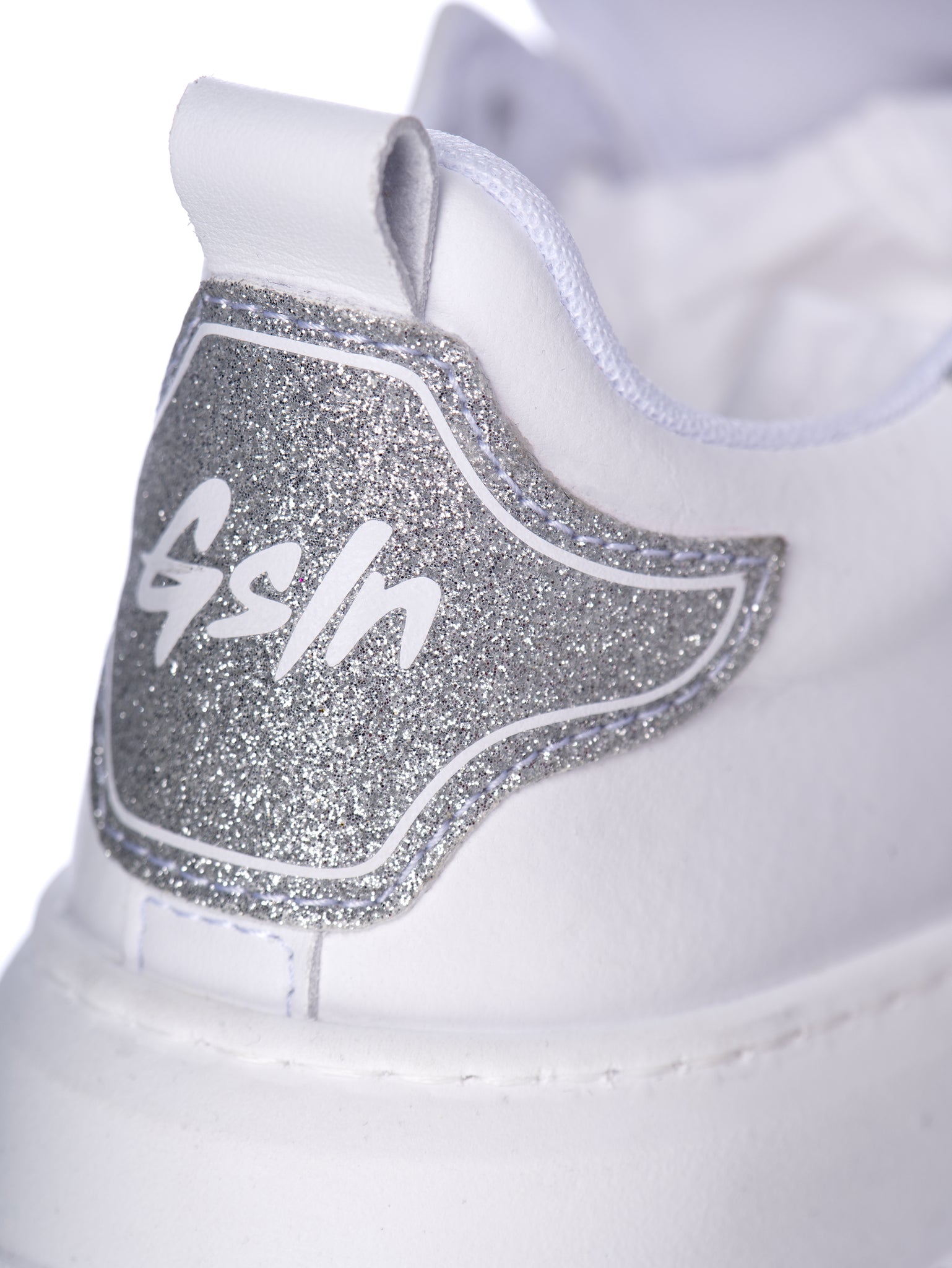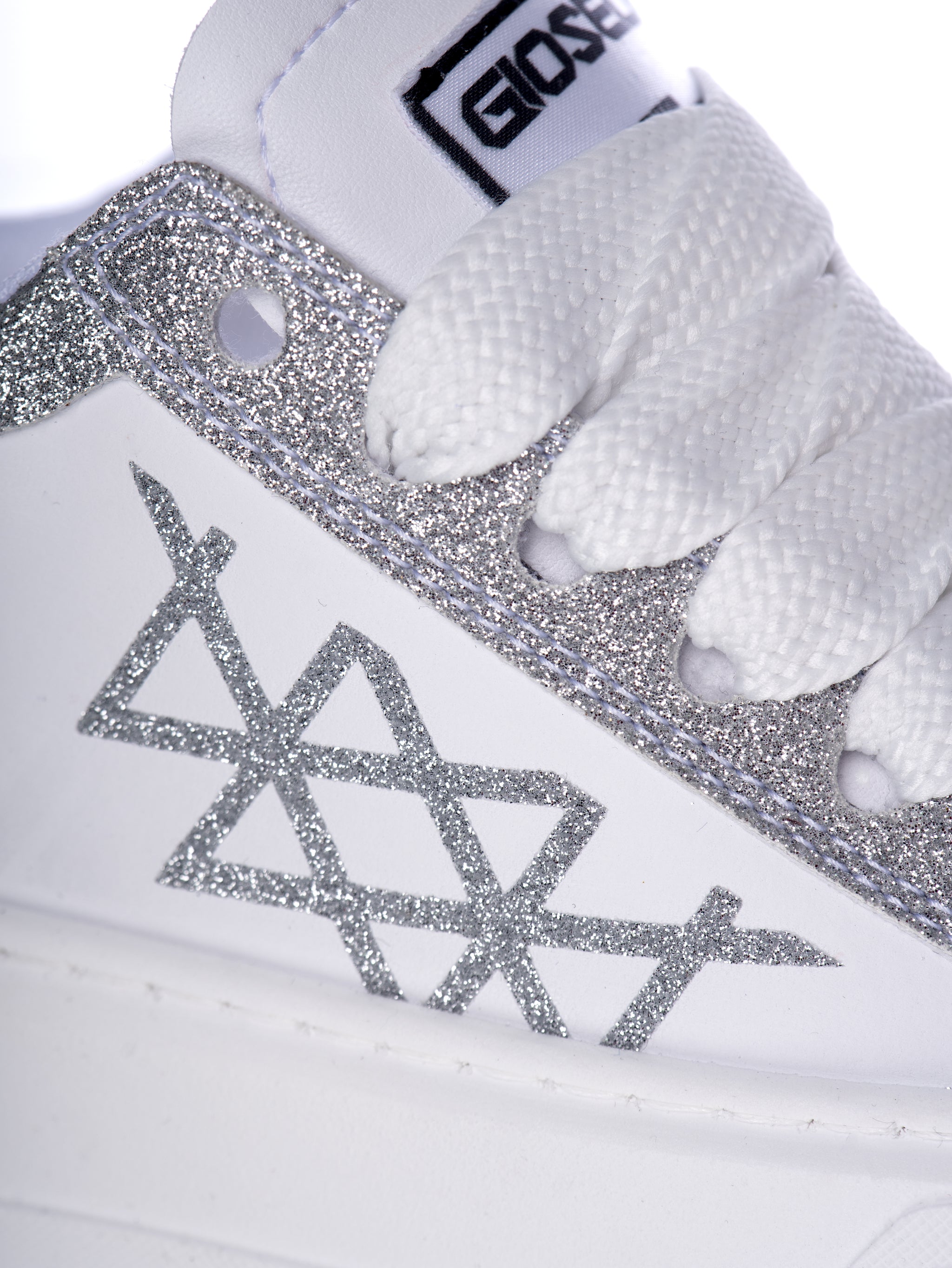 E non possiamo dimenticare i dettagli scintillanti che aggiungono un tocco di magia a Bridge. Grazie ai delicati dettagli in glitter, questa scarpa brilla con una luminosità che cattura l'attenzione e riflette la tua personalità audace e unica. Il logo distintivo di Gioselin, emblema di qualità e stile senza compromessi, è trasformato in un'opera d'arte scintillante, incastonato con maestria nella scarpa.