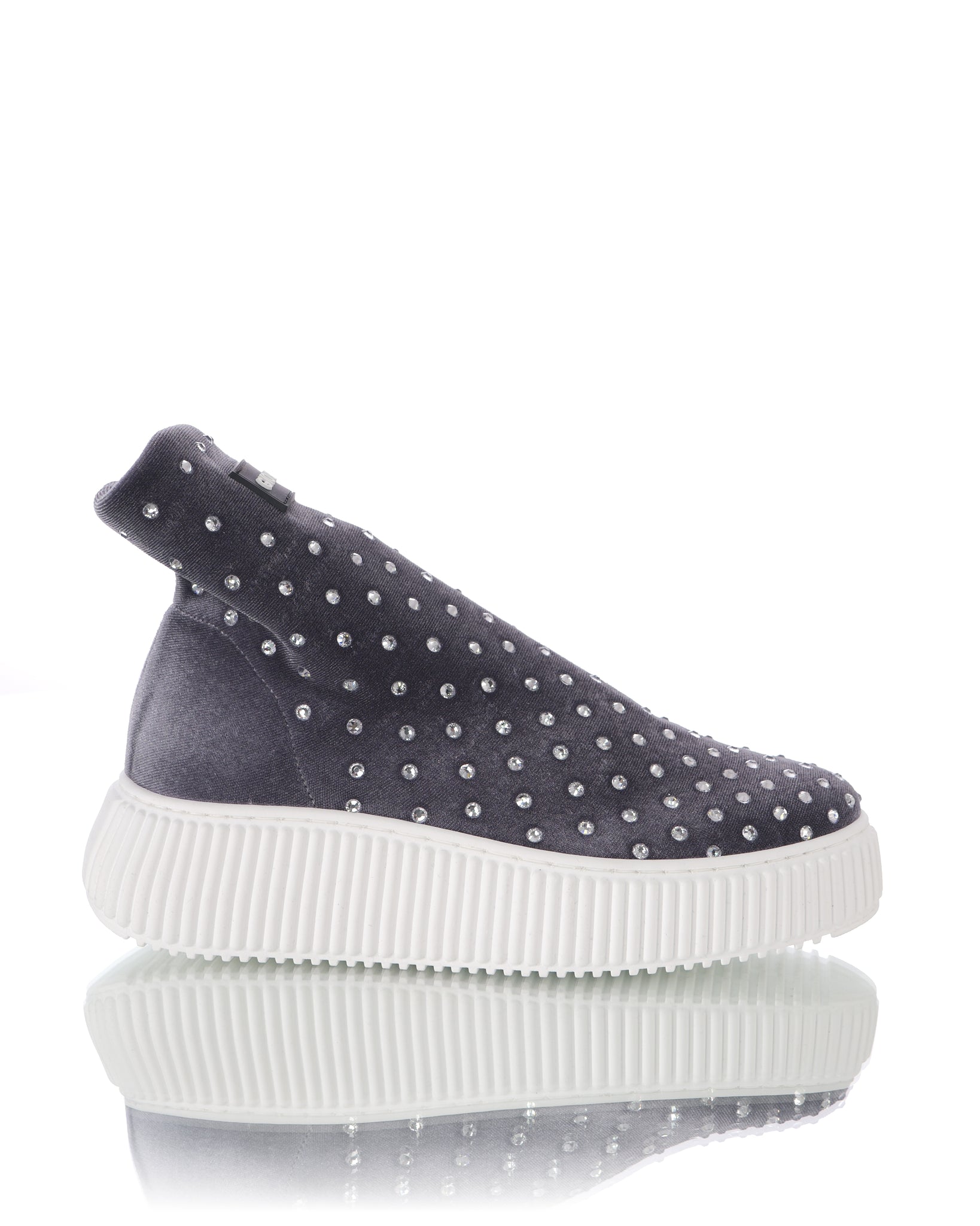 Porta il tuo stile a un livello superiore con Fear Velvet Black Diamond, una versione esclusiva e scintillante del nostro iconico modello Fear. Questa scarpa in velluto è arricchita da dettagli in cristalli neri che aggiungono un tocco di lusso e raffinatezza.