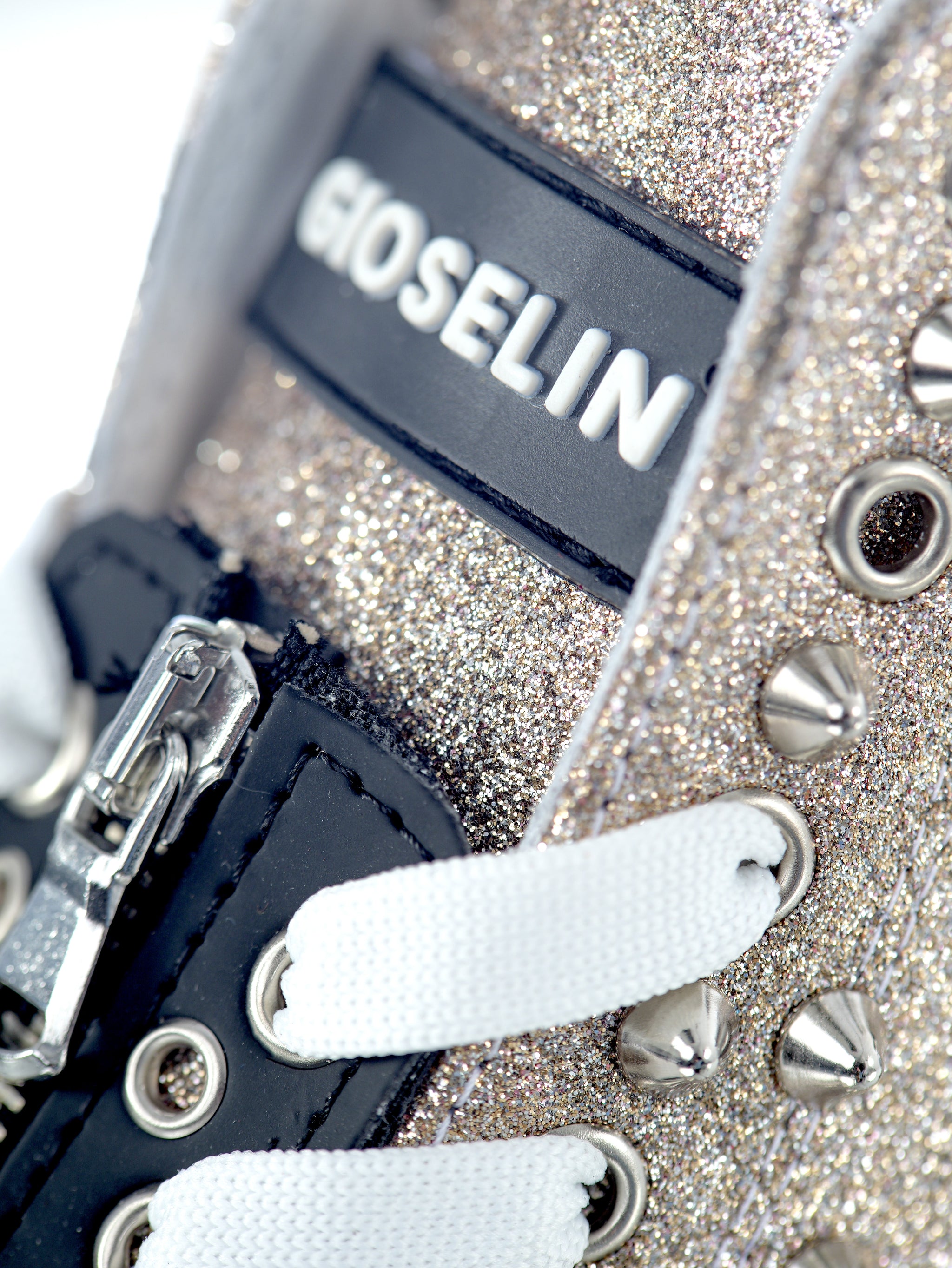 Preparati a fare una dichiarazione di stile e a far brillare il tuo outfit con le Sneakers Glitter Gold con Borchie della nuova collezione. Non aspettare oltre, aggiungile al tuo carrello e preparati a camminare con fiducia in ogni situazione. Lascia che il tuo luccichio parli per te e conquista l'attenzione di tutti!