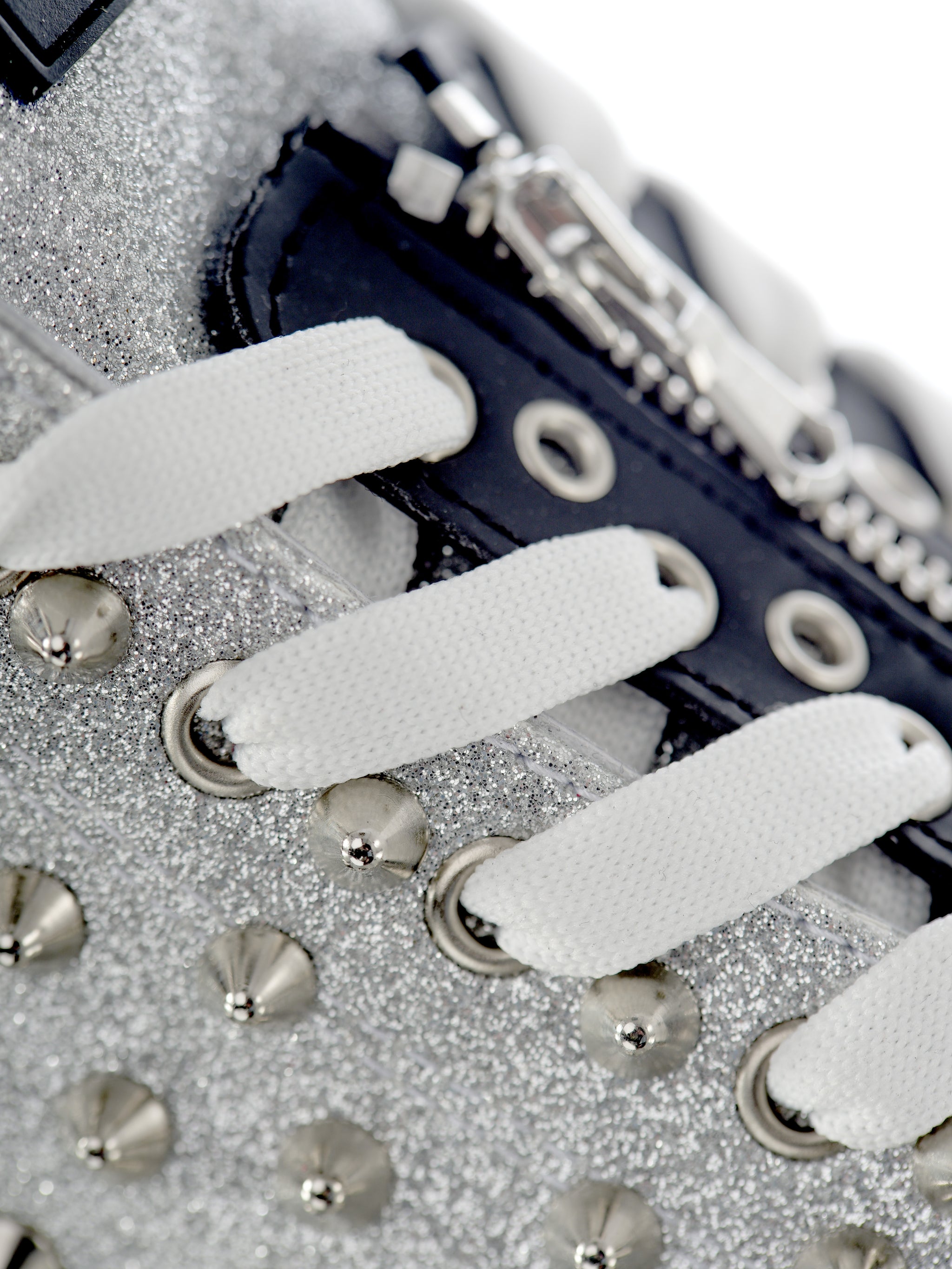 Se desideri uno stile unico e audace che catturi l'attenzione in ogni situazione, le Sneakers Glitter Silver con Borchie della nuova collezione sono la scelta ideale. Con queste sneakers, non sbagli mai, perché un tocco di luccichio e un pizzico di originalità possono fare la differenza nel tuo guardaroba.