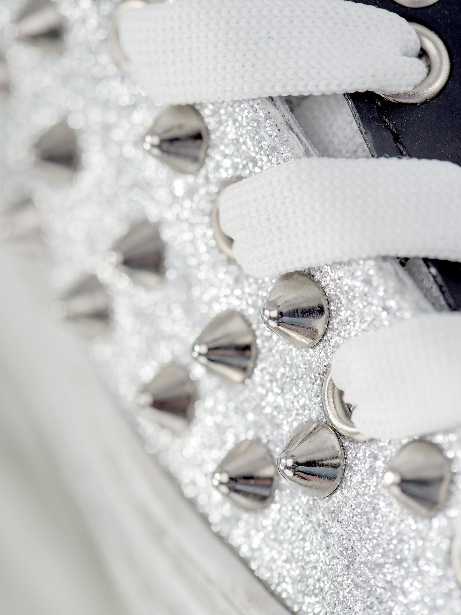 Preparati a fare una dichiarazione di stile e a far brillare il tuo outfit con le Sneakers Glitter Silver con Borchie della nuova collezione. Non aspettare oltre, aggiungile al tuo carrello e preparati a camminare con fiducia in ogni situazione. Lascia che il tuo luccichio parli per te e conquista l'attenzione di tutti!