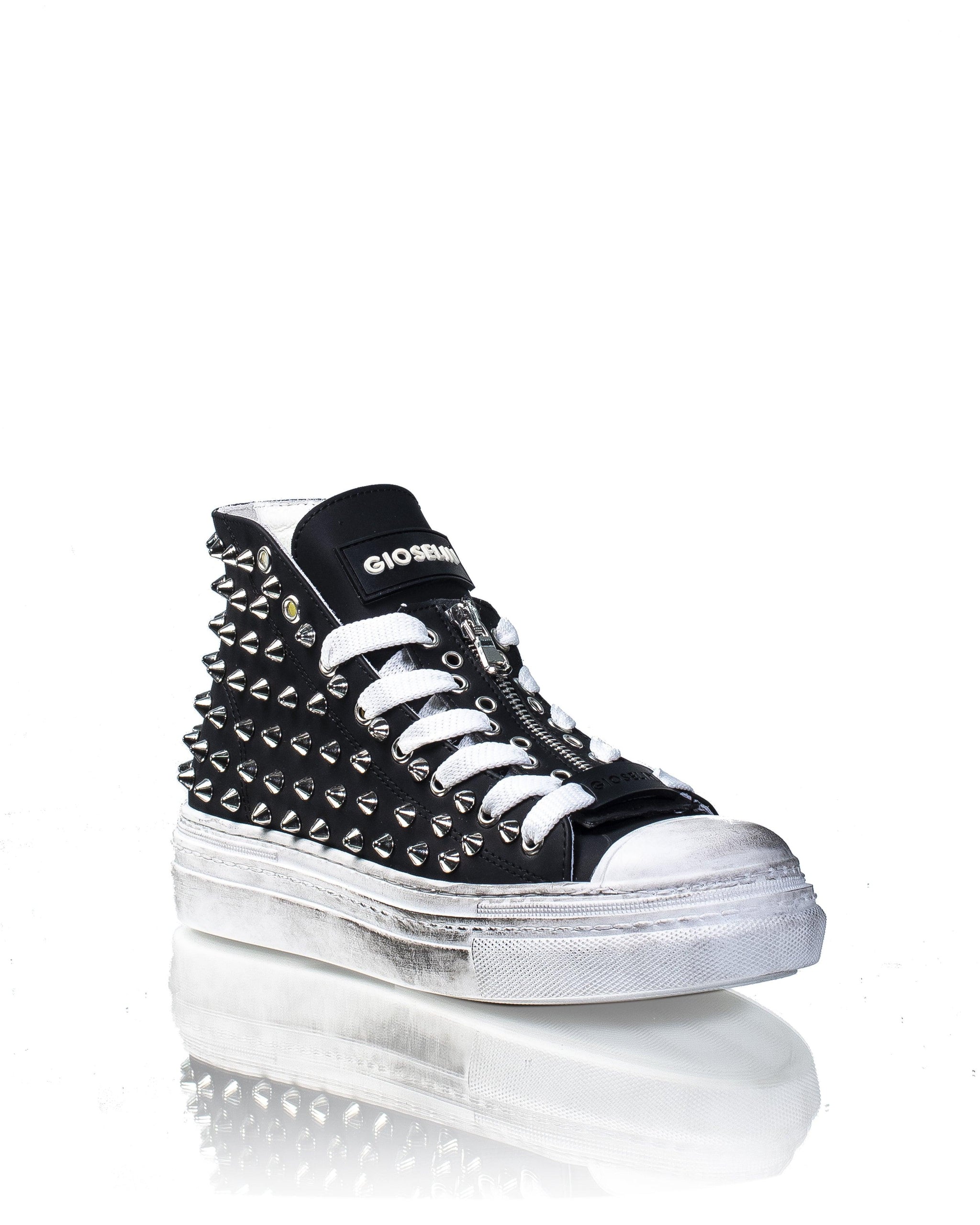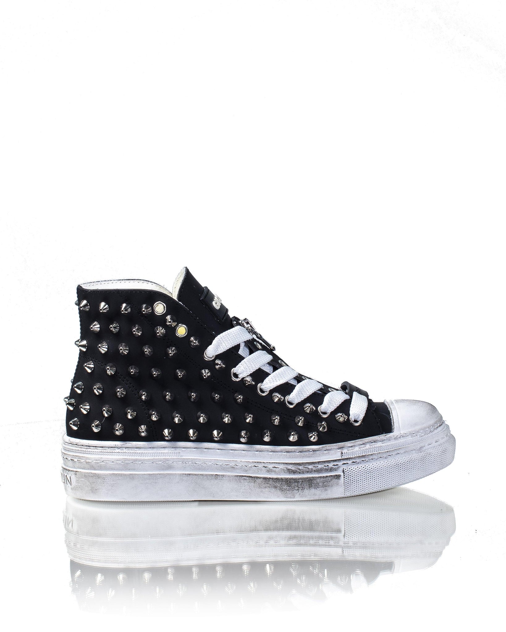 Le sneakers sono un must have in ogni guardaroba e con il nostro modello con profilo alto, puoi essere sicuro di catturare l'attenzione ovunque tu vada. Le pratiche linguette rendono semplice indossare queste scarpe, risparmiandoti tempo al mattino. Il design stringato assicura una vestibilità personalizzata, mentre le borchie in Nikel color argento aggiungono quel tocco di grinta che fa la differenza.