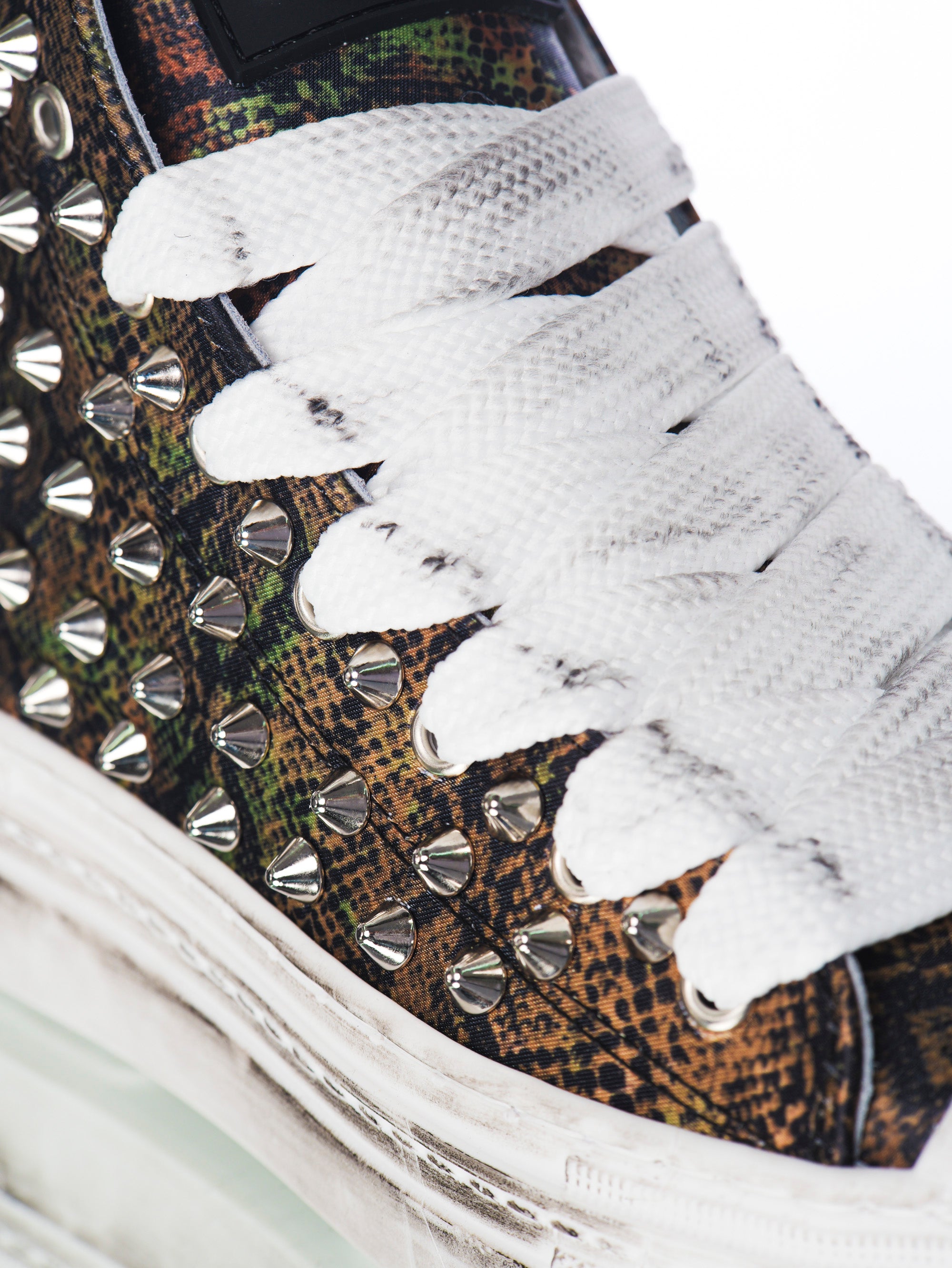 La "Play Pitonato" mantiene l'essenza ribelle della versione originale, con le sue inconfondibili borchie che donano un tocco grintoso e inimitabile. Tuttavia, in questa nuova edizione, il design è stato arricchito con una texture pitonata, creando un effetto visivo che fonde eleganza selvaggia e raffinatezza moderna.