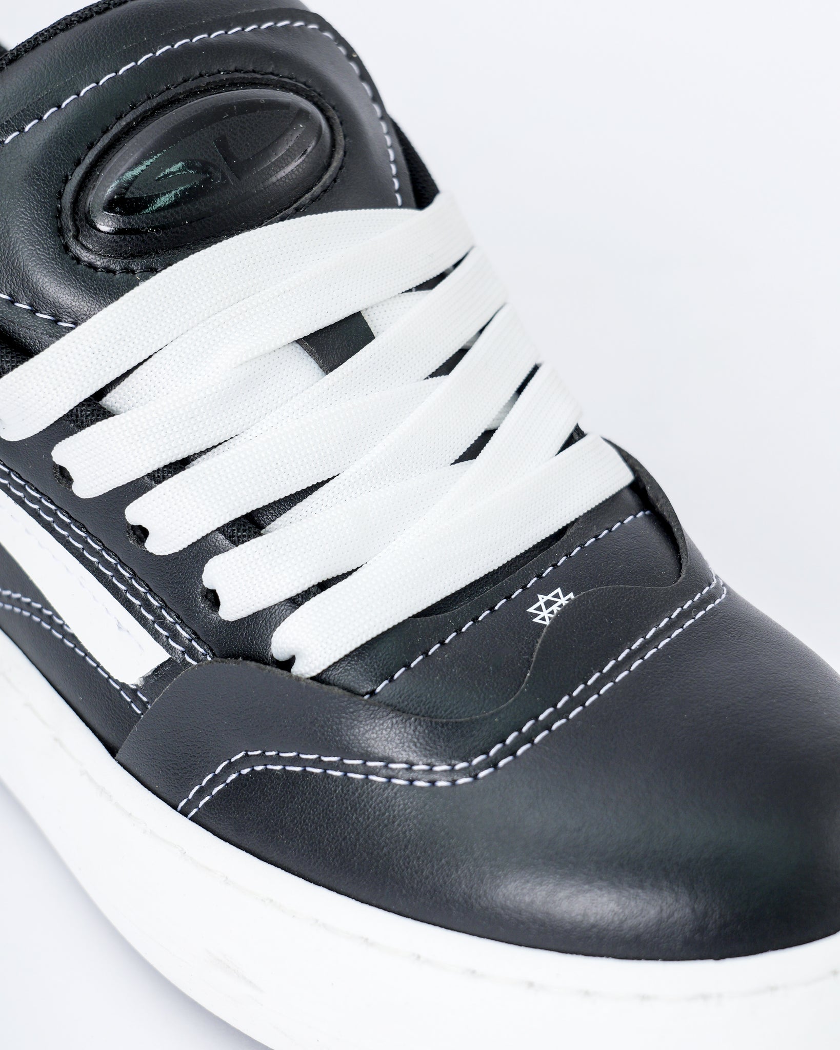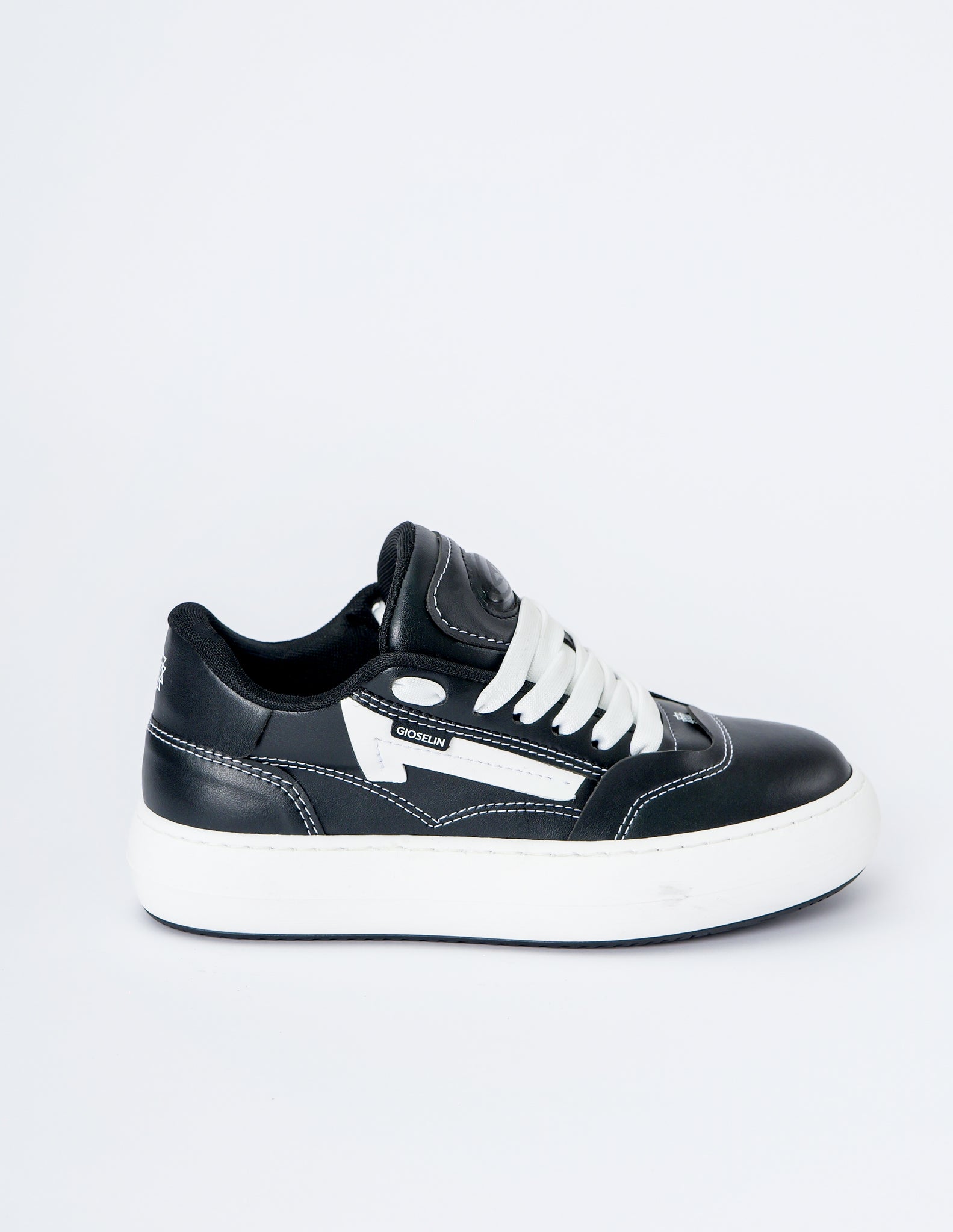 La tomaia total black, interrotta da dettagli bianchi a contrasto, dona alla sneaker un’estetica urban e contemporanea, perfetta per completare qualsiasi outfit. La suola alta e leggera ammortizza l’appoggio e assicura una camminata naturale, senza appesantire il piede.