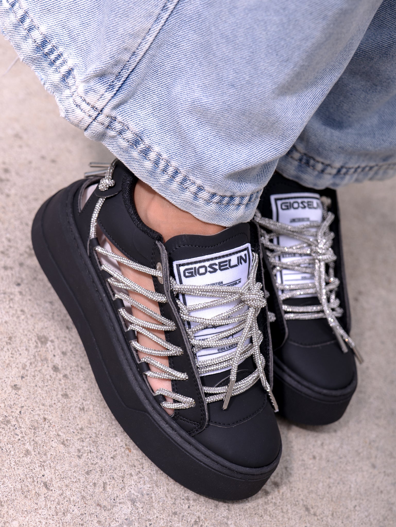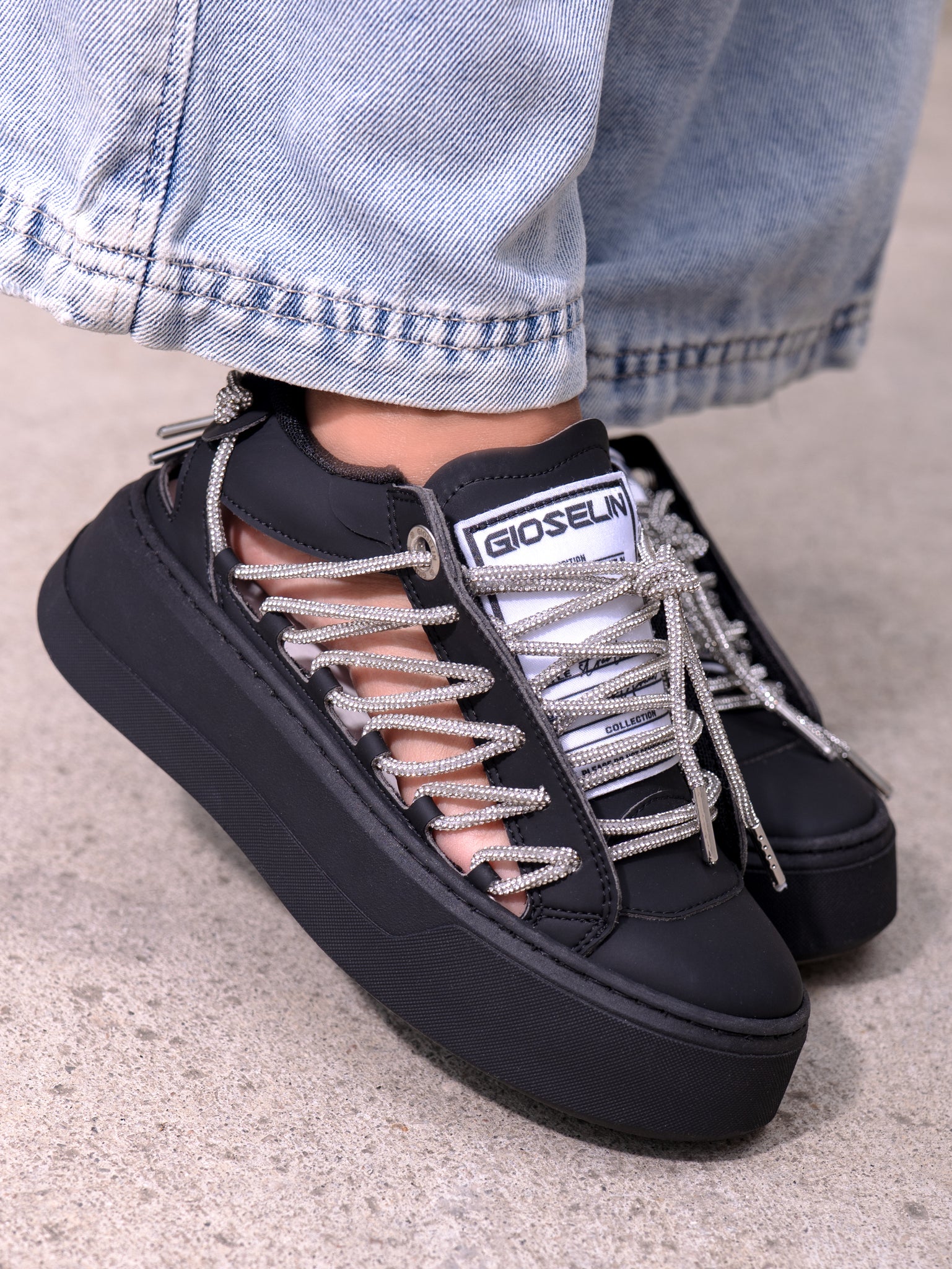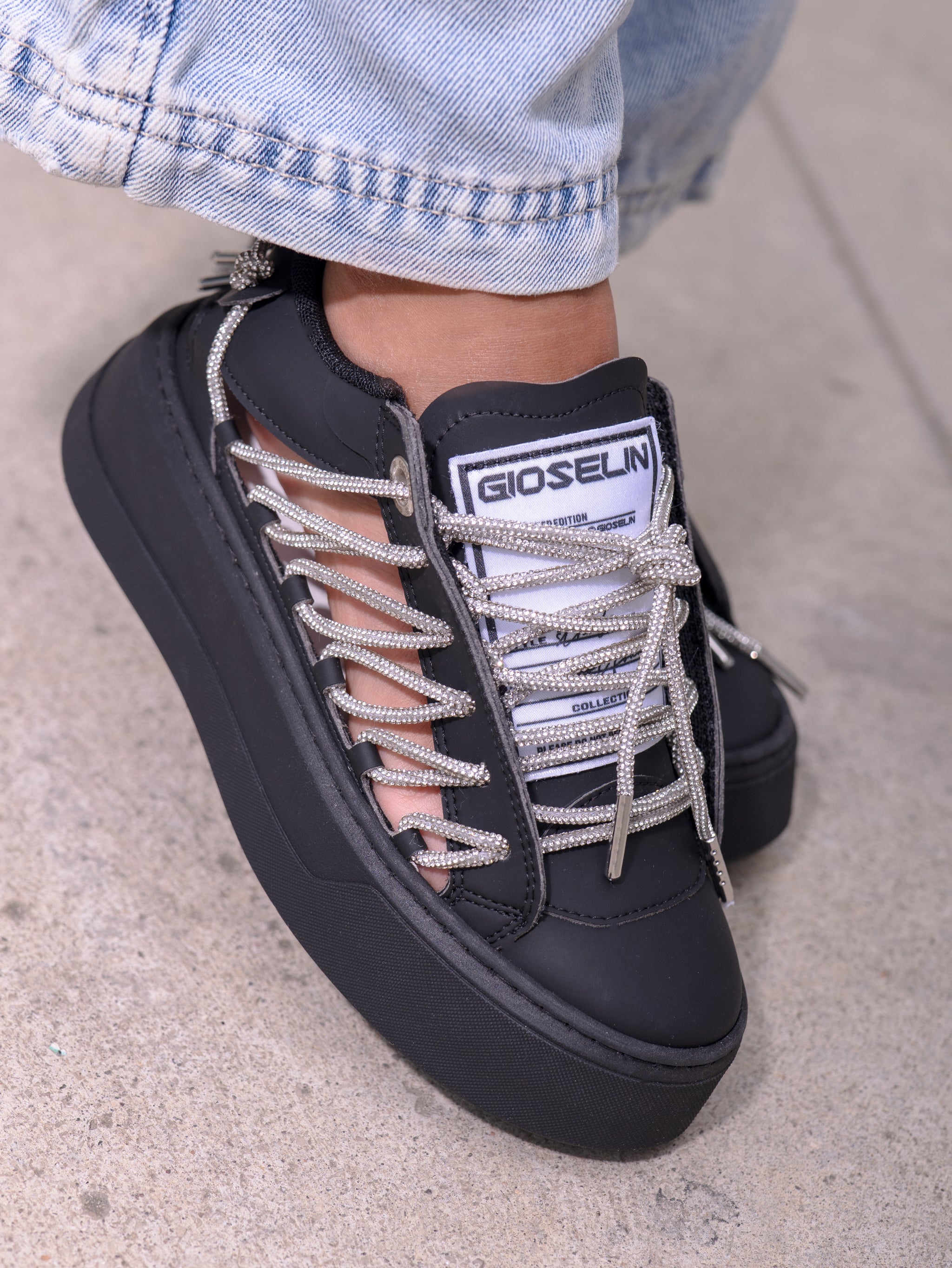 Spaziale Diamond Nera è la sneaker che incarna il lato più enigmatico e seducente dello stile urbano. Una creazione Gioselin che unisce design deciso, dettagli preziosi e carattere dark.