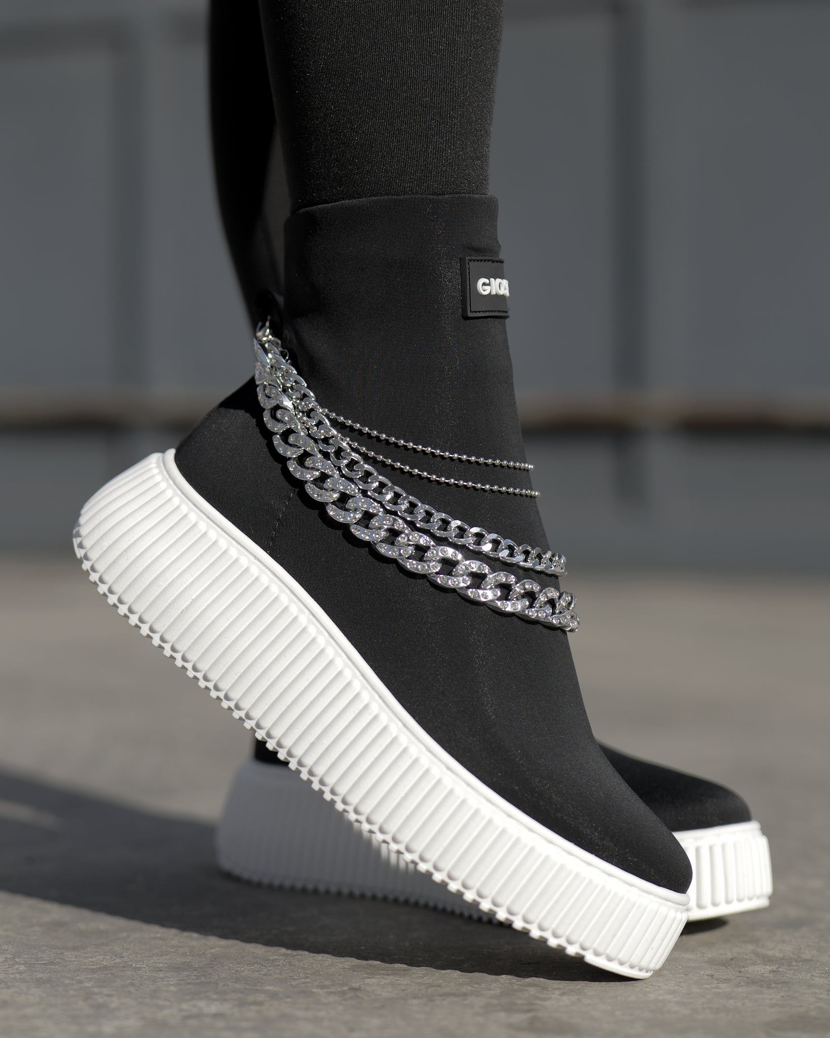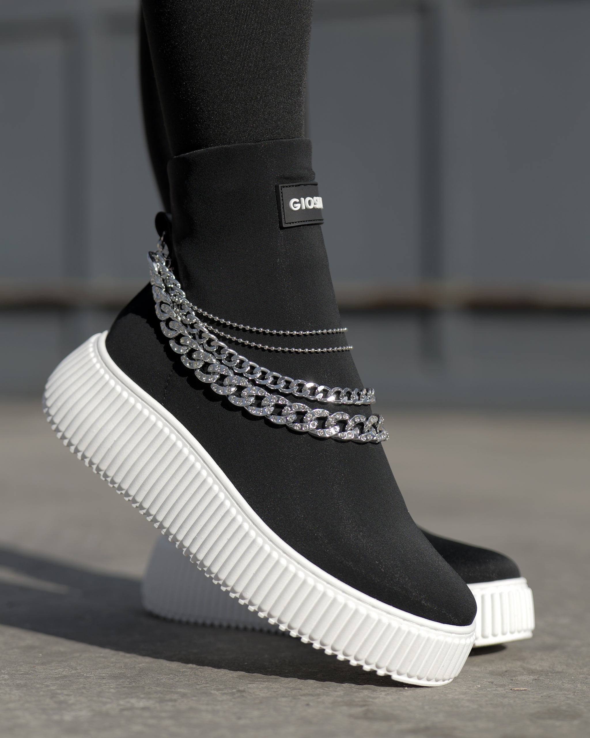 Il modello Fear si distingue per il suo design moderno e audace, pensato per chi cerca una calzatura di tendenza senza rinunciare al comfort. Per la nuova collezione SS25, Fear si rinnova con una suola rigata da 4,5 cm, garantendo un’andatura stabile e un look ancora più sofisticato.