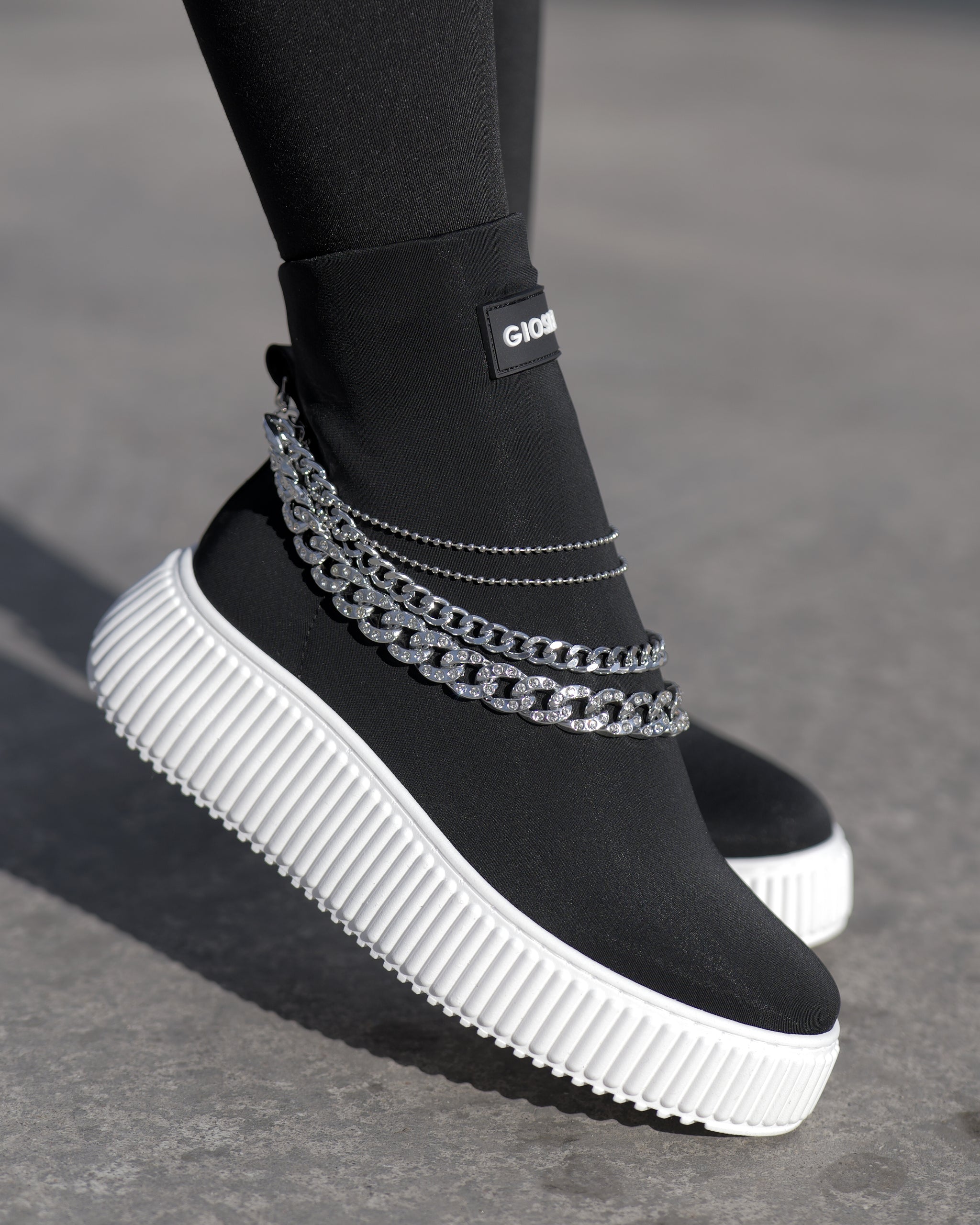 - Tomaia in tessuto elasticizzato – Avvolge il piede come una seconda pelle, adattandosi perfettamente alla forma per un fit impeccabile.