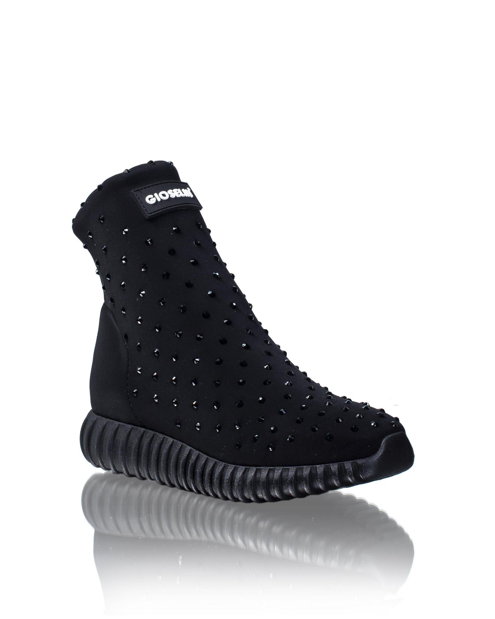 La suola sagomata nera offre una presa stabile su qualsiasi superficie, mentre la caviglia effetto calzino garantisce una calzata comoda e sicura. Che tu stia passeggiando in città o partecipando a un evento speciale, queste sneakers sono pronte per ogni occasione.