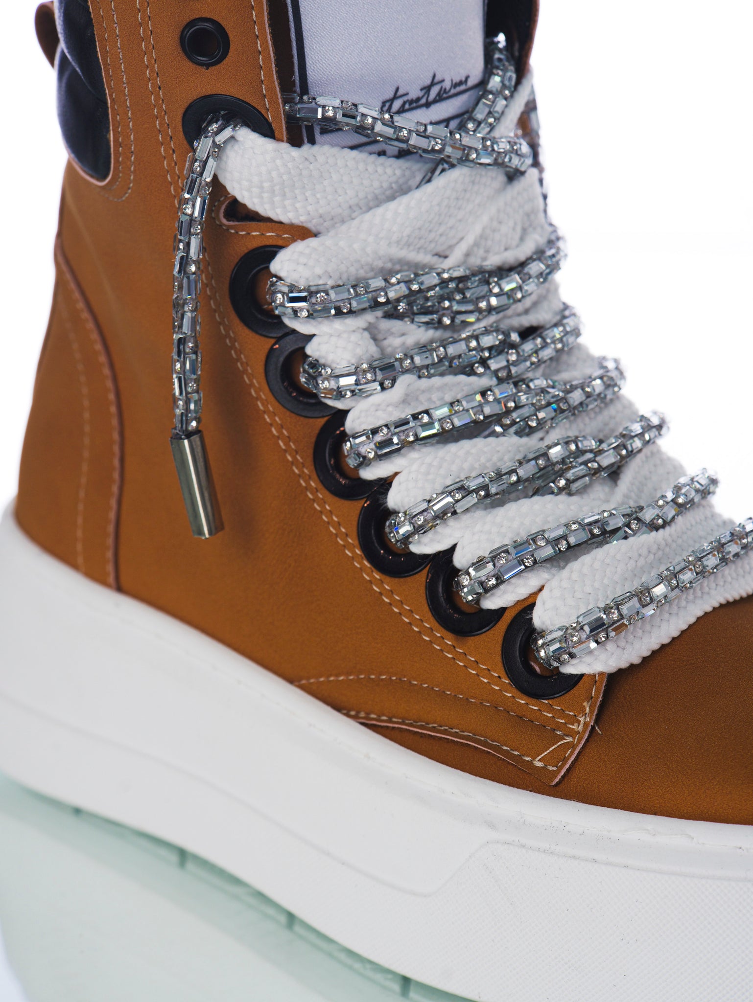 Le "Nit-up Tennis" si distinguono per i loro lacci unici, decorati con brillanti che ricordano i preziosi tennis di bracciali. Questi dettagli scintillanti non solo aggiungono un tocco di glamour ineguagliabile, ma riflettono la luce in modo da farvi brillare in ogni occasione. L'eleganza dei lacci, unita al design contemporaneo delle scarpe, crea un look che non passa inosservato.