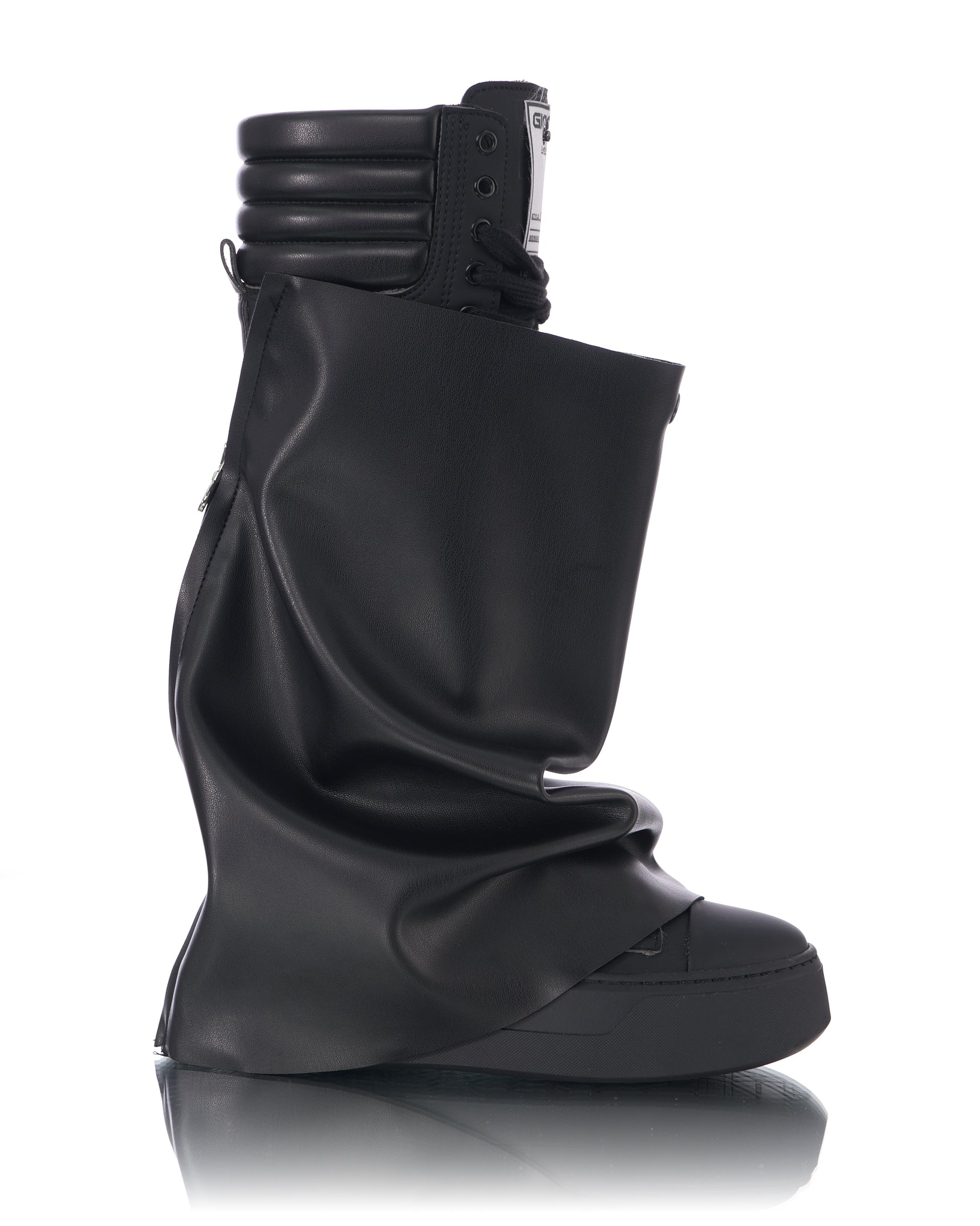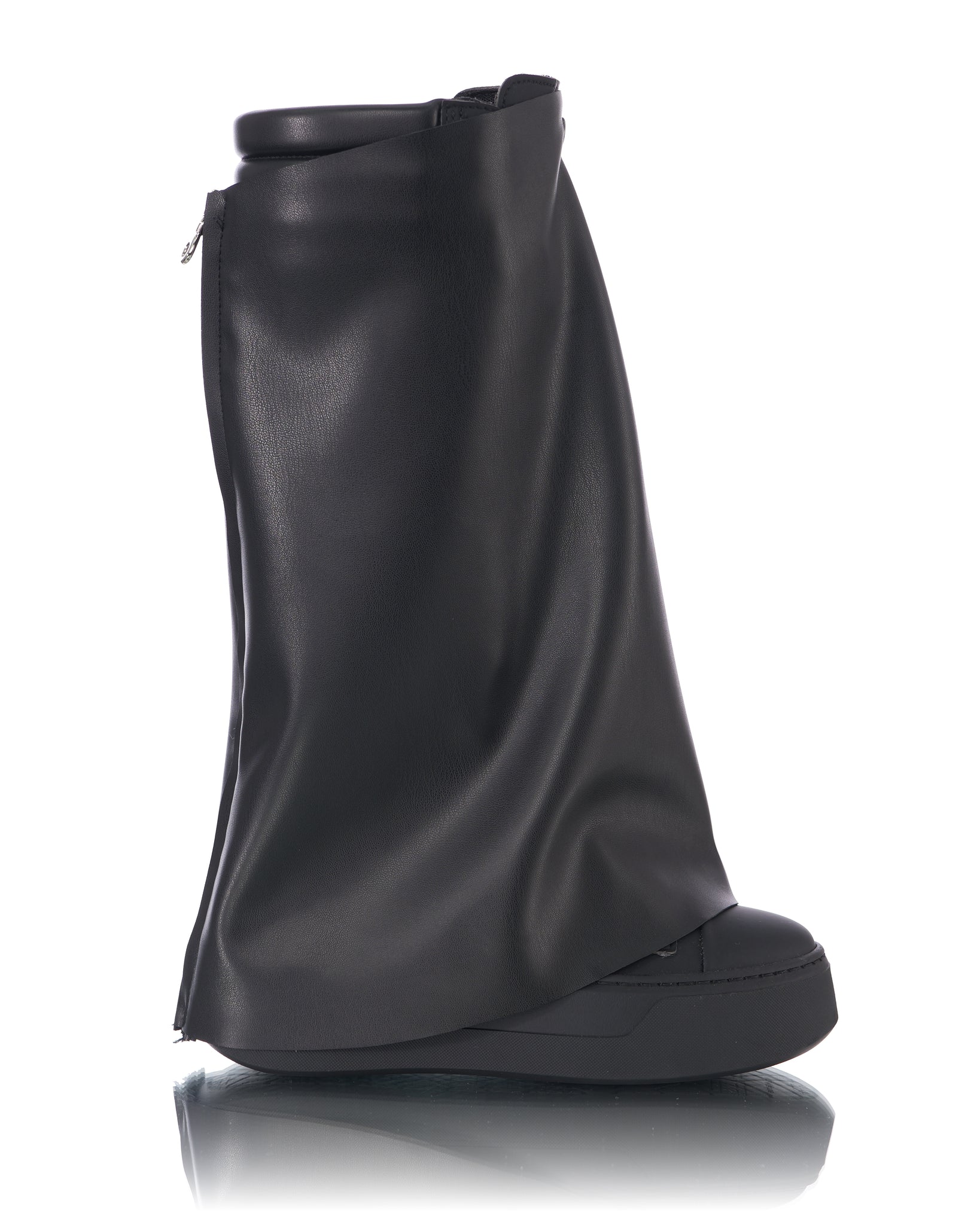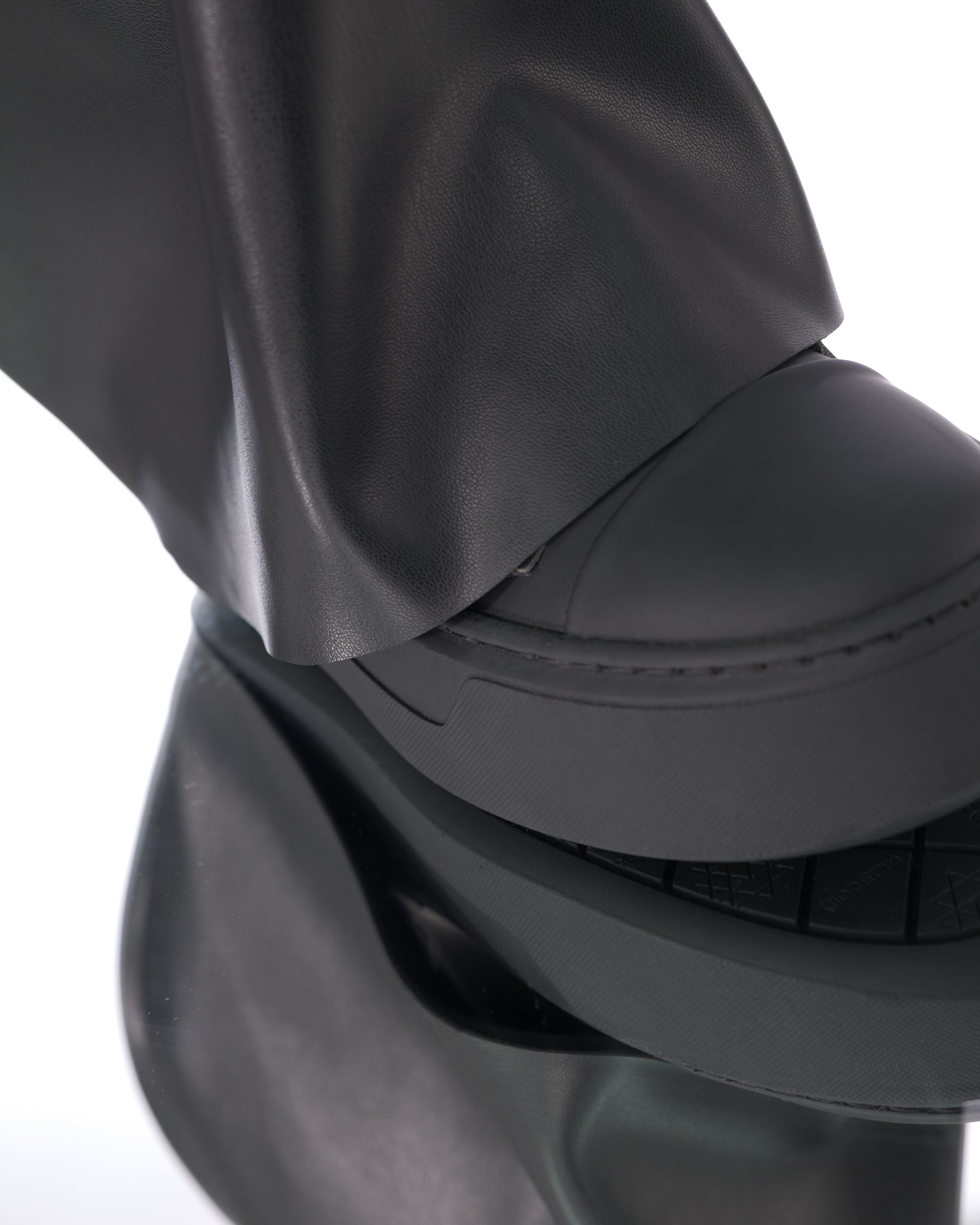 Materiale e Design: Realizzato con una combinazione di materiali premium, lo Stivale Kim presenta una superficie liscia e sofisticata che assicura comfort e resistenza. Il dettaglio pieghevole crea un effetto fluido e moderno, trasformando l'aspetto dello stivale a seconda di come viene indossato.