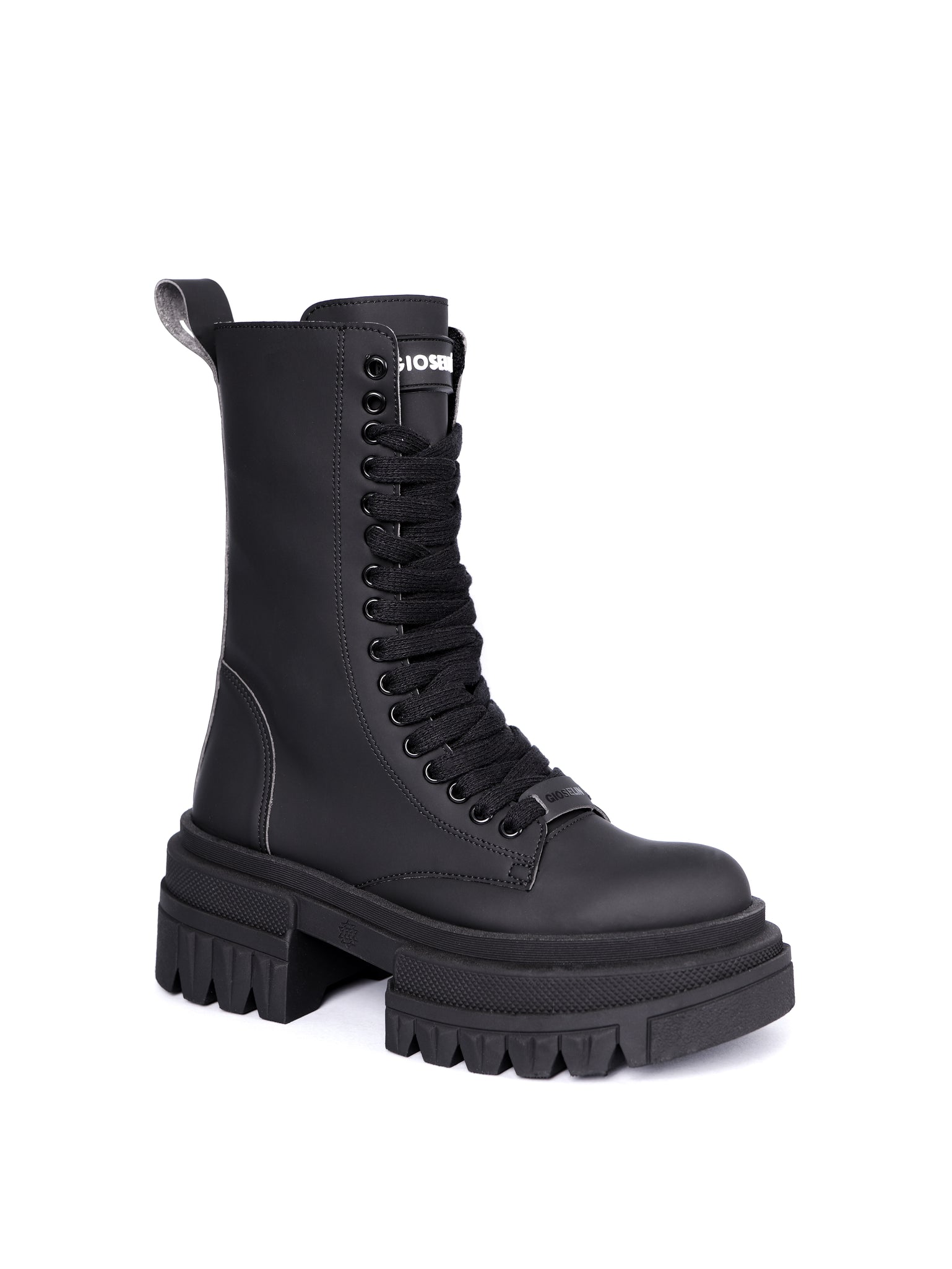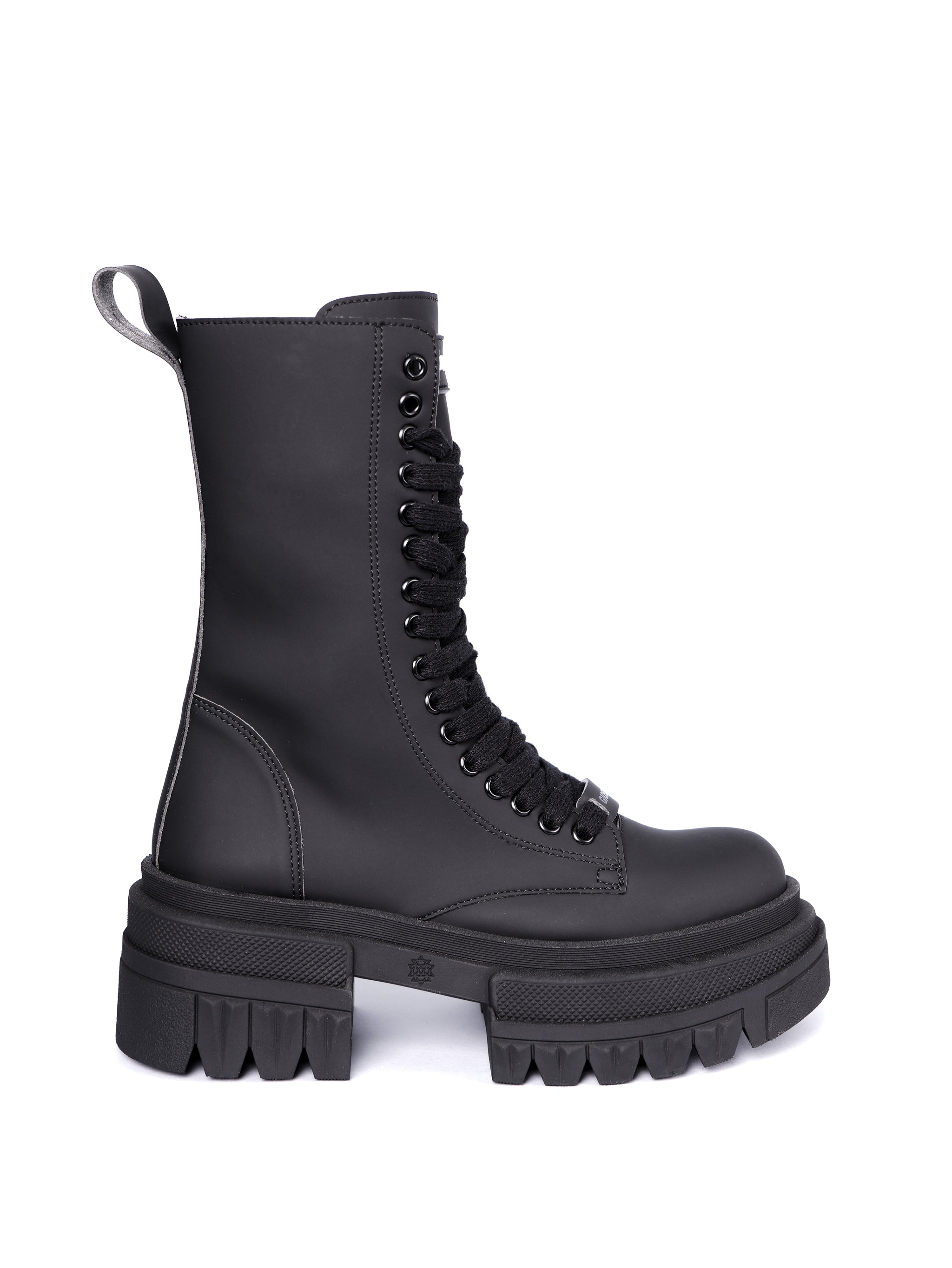 Con un modello che si estende fino al ginocchio, quest'Anfibio Alto Nero aggiunge un elemento distintivo al tuo guardaroba, pronto a catturare l'attenzione di tutti.
