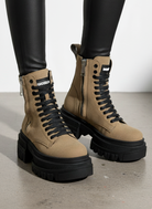 Il gambale alto 16 cm slancia la silhouette, mentre la suola chunky di 8 cm dona altezza e stabilità, esaltando lo stile deciso del modello. La suola zigrinata antiscivolo garantisce trazione e sicurezza su ogni superficie.