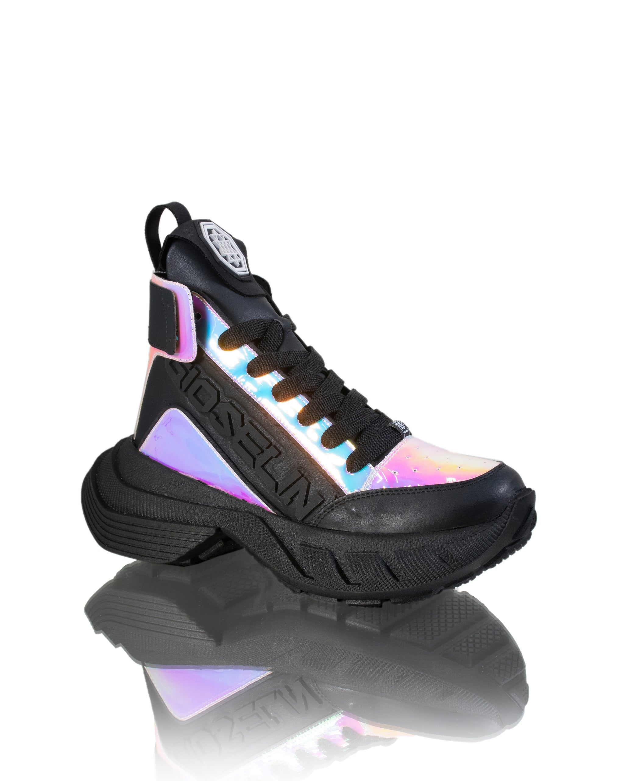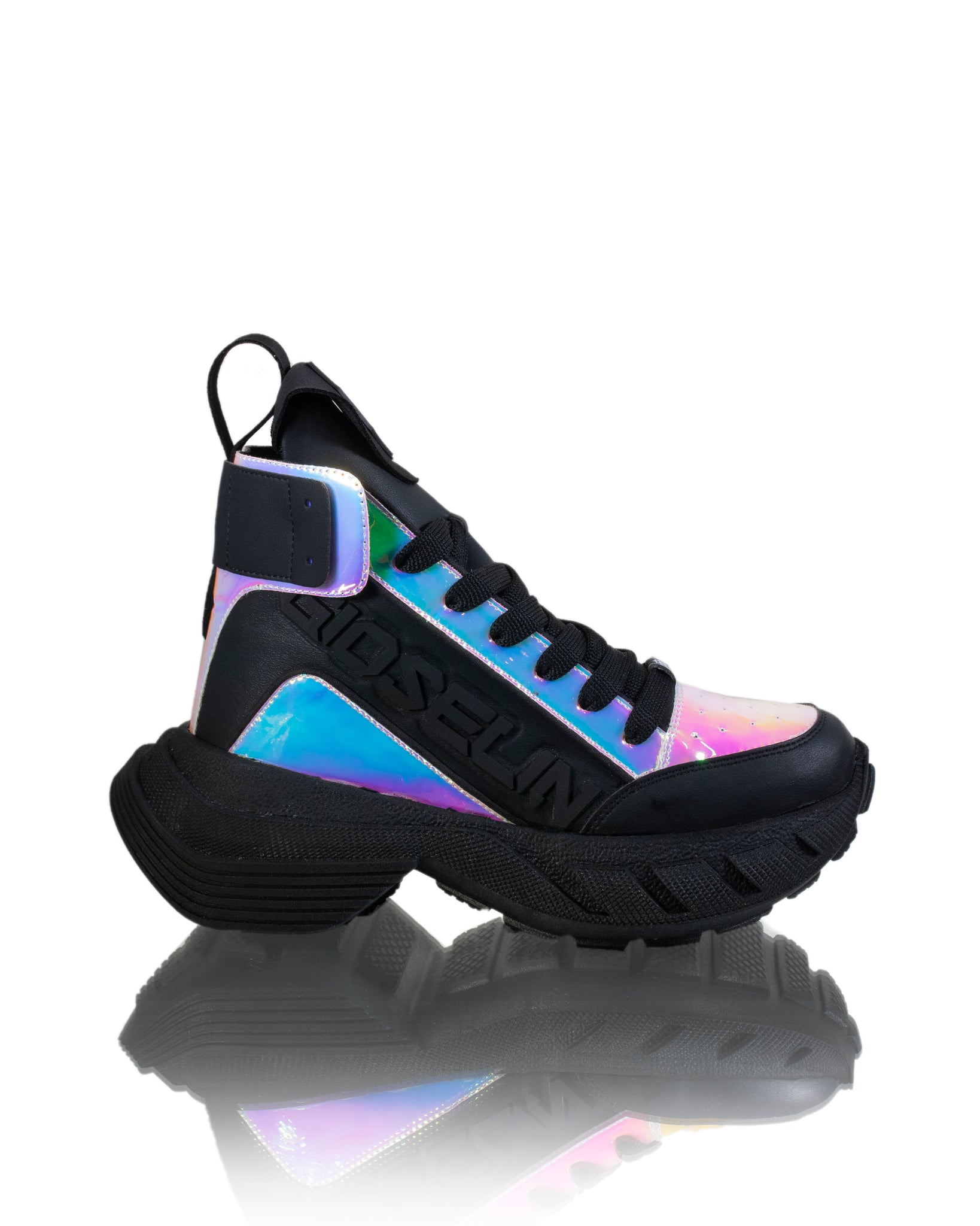 Per la cura di queste sneakers, ti consigliamo di pulirle con un panno o una spugna umida per mantenere la loro luminosità nel tempo. La tomaia è realizzata in ecopelle liscia, conferendo alle sneakers un aspetto pulito e moderno. L'interno delle scarpe è realizzato al 100% in tessuto per offrire comfort durante l'uso. La suola è composta al 100% in gomma, garantendo una calzatura durevole e di qualità. Con le sneakers con dettagli iridescenti Gioselin, puoi camminare con stile e attirare l'attenzione ovunque tu vada.