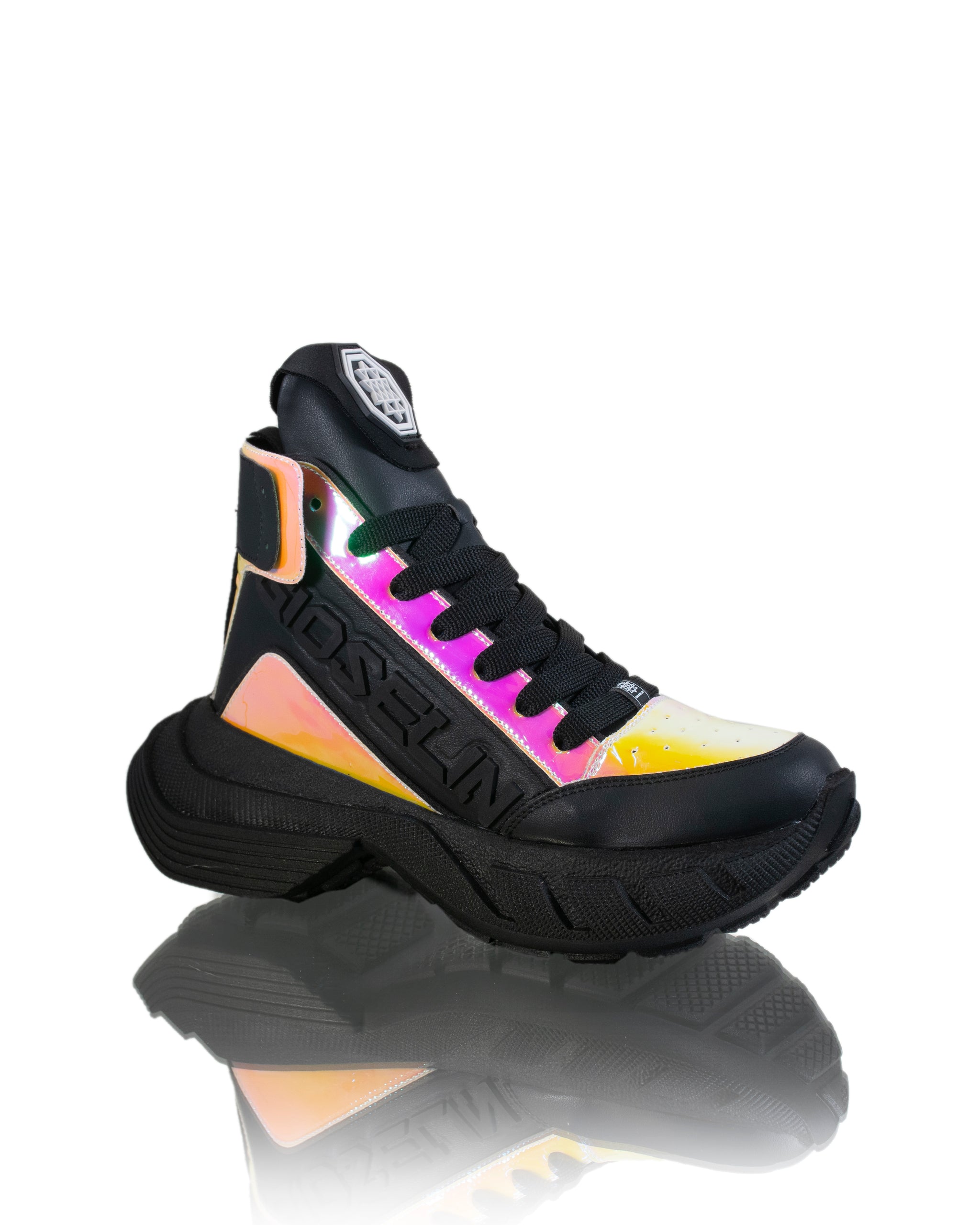 Le sneakers con dettagli iridescenti sono una scelta sofisticata per chi cerca un tocco di luminosità nel proprio stile. Queste scarpe da ginnastica offrono un profilo alto che aggiunge un tocco di eleganza al tuo look. Il modello è stringato, garantendo una calzata sicura e confortevole per tutto il giorno. I pannelli a contrasto iridescenti aggiungono un tocco di originalità al design, catturando la luce in modi affascinanti.