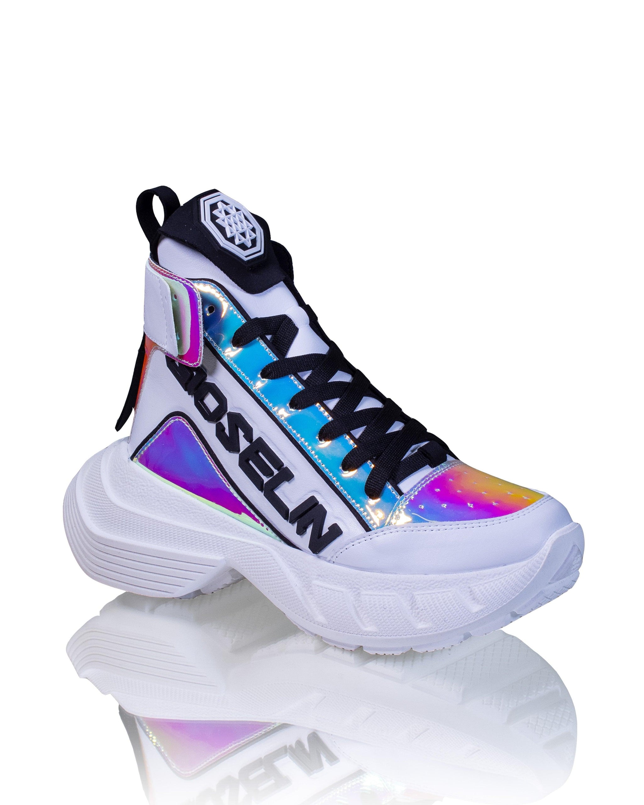 Le sneakers con dettagli iridescenti sono la scelta ideale per chi cerca un tocco di luminosità nel proprio stile. Queste scarpe da ginnastica presentano un profilo alto che aggiunge un tocco di eleganza al tuo look. Il modello è stringato per una calzata sicura e comoda per tutta la giornata. I pannelli a contrasto iridescenti aggiungono un tocco di originalità al design, catturando la luce in modo affascinante.