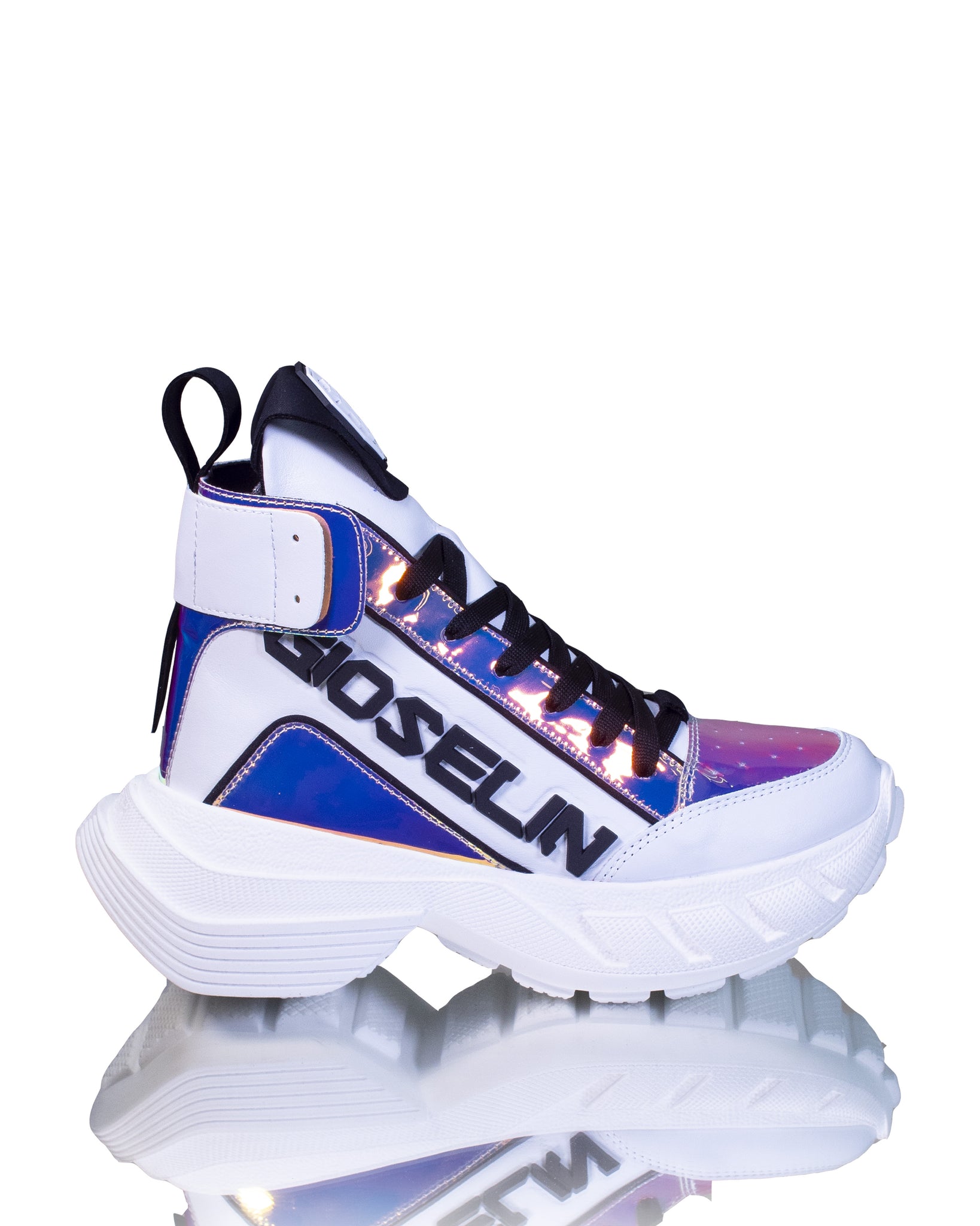 I pannelli a contrasto iridescenti conferiscono a queste sneakers un'aura futuristica e di tendenza, rendendole una scelta ideale per chi ama distinguersi. Il logo distintivo Gioselin, stampato in modo audace sul lato, mette in risalto l'originalità del design.