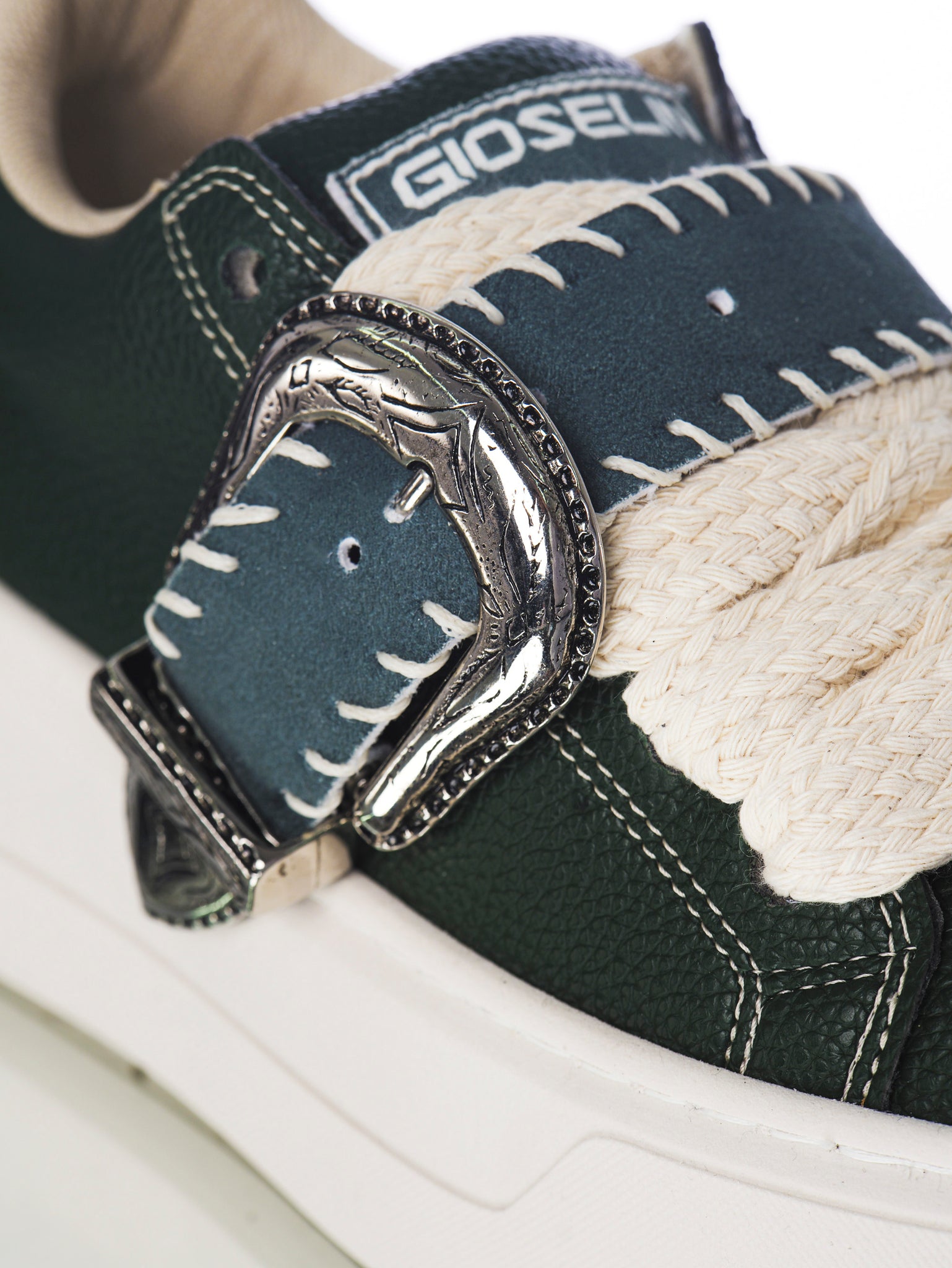 Le "New Texas" si caratterizzano per un design distintivo che unisce elementi classici e moderni. L'elemento più sorprendente è l'accessorio vicino all'allacciatura, un'imponente fibbia che richiama lo stile western, impreziosita da dettagli decorativi che aggiungono un tocco di lusso. I lacci robusti e intrecciati non solo garantiscono una calzata sicura, ma conferiscono anche un look deciso e distintivo. La tomaia in pelle di alta qualità, con finiture curate nei minimi dettagli, riflette l'attenzione e la passione per l'artigianato tipici di Gioselin.