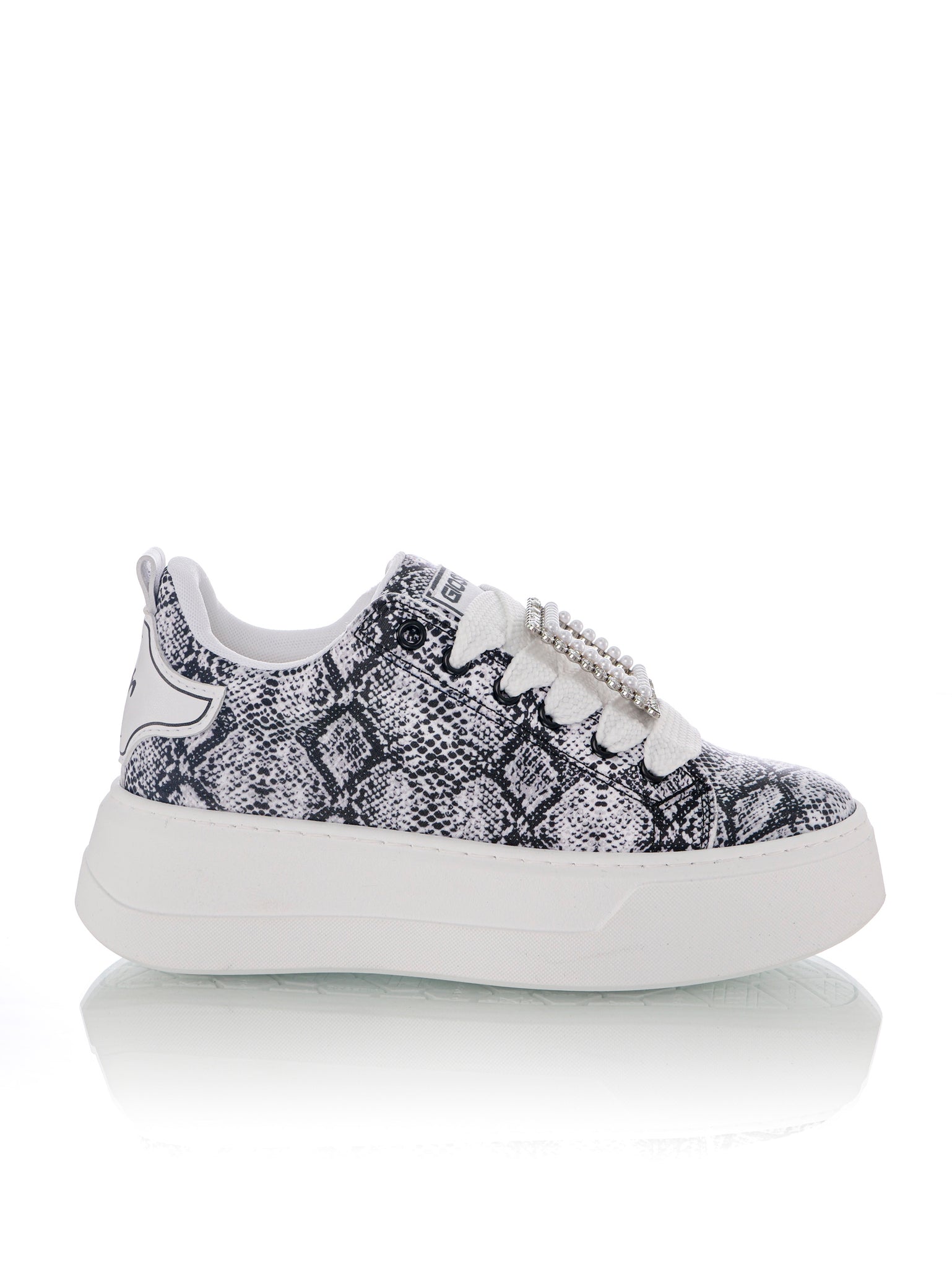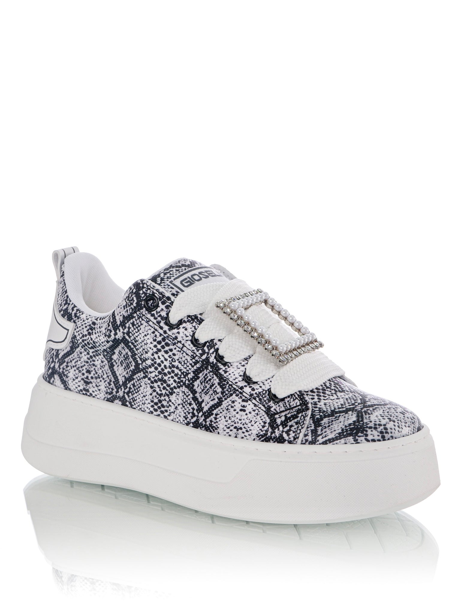 La Pearl Pitonato è molto più di una semplice scarpa, è un vero e proprio gioiello. Tra i lacci, una fibbia decorata con perle e strass cattura immediatamente l'attenzione, conferendo un tocco di lusso inimitabile. Al tallone, un accessorio rimovibile di perle e strass completa l'estetica raffinata, aggiungendo un elemento di glamour ad ogni tuo passo. Questa caratteristica ti permette di personalizzare la scarpa in base al tuo stile e all'occasione.