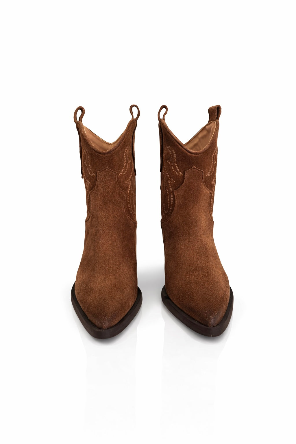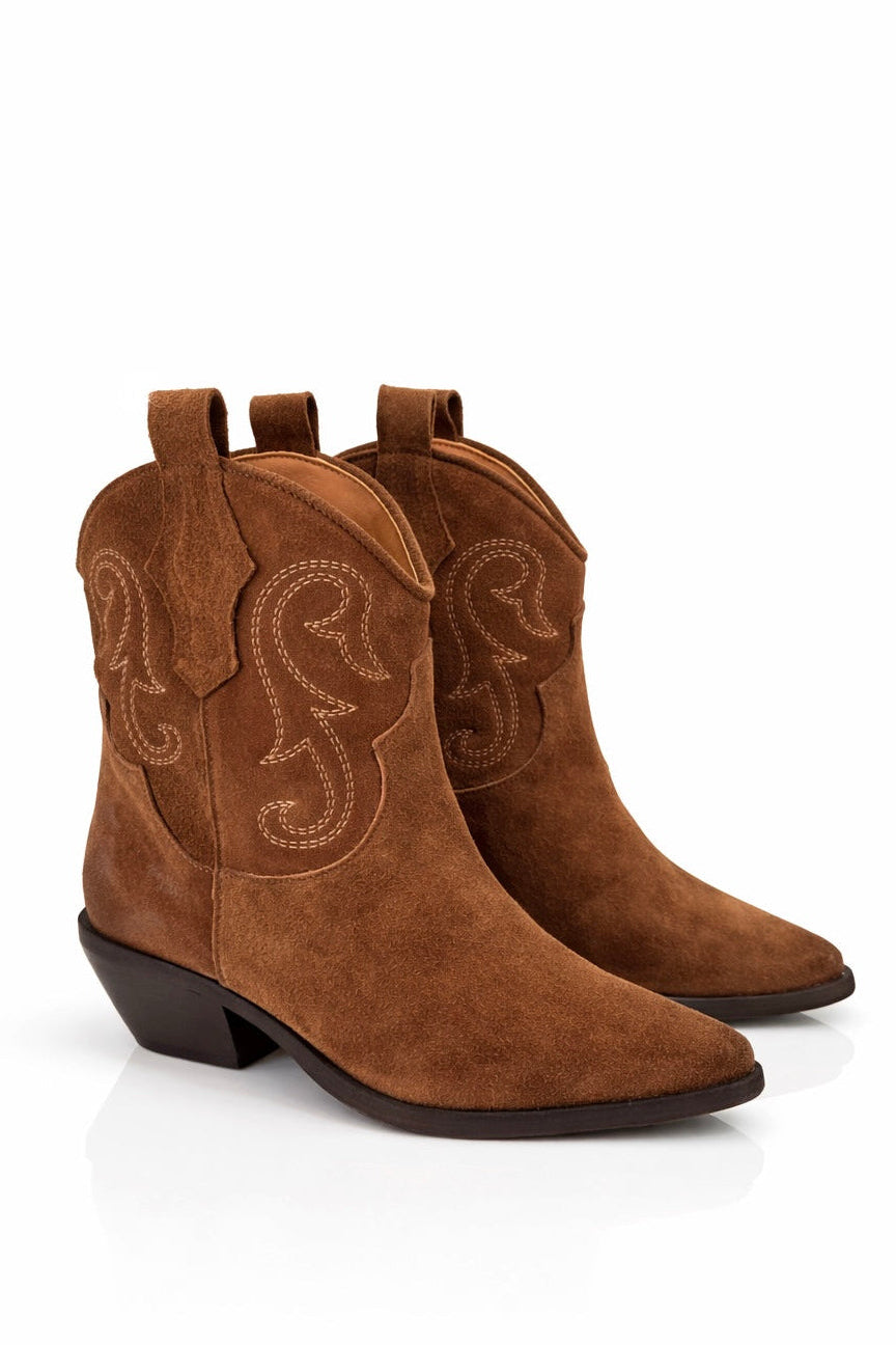 Il design è arricchito dalle classiche impunture in stile western, che decorano la tomaia con un motivo elegante e distintivo. La punta affusolata e il tacco inclinato in stile texano definiscono una linea decisa e femminile, mantenendo allo stesso tempo stabilità e comfort.