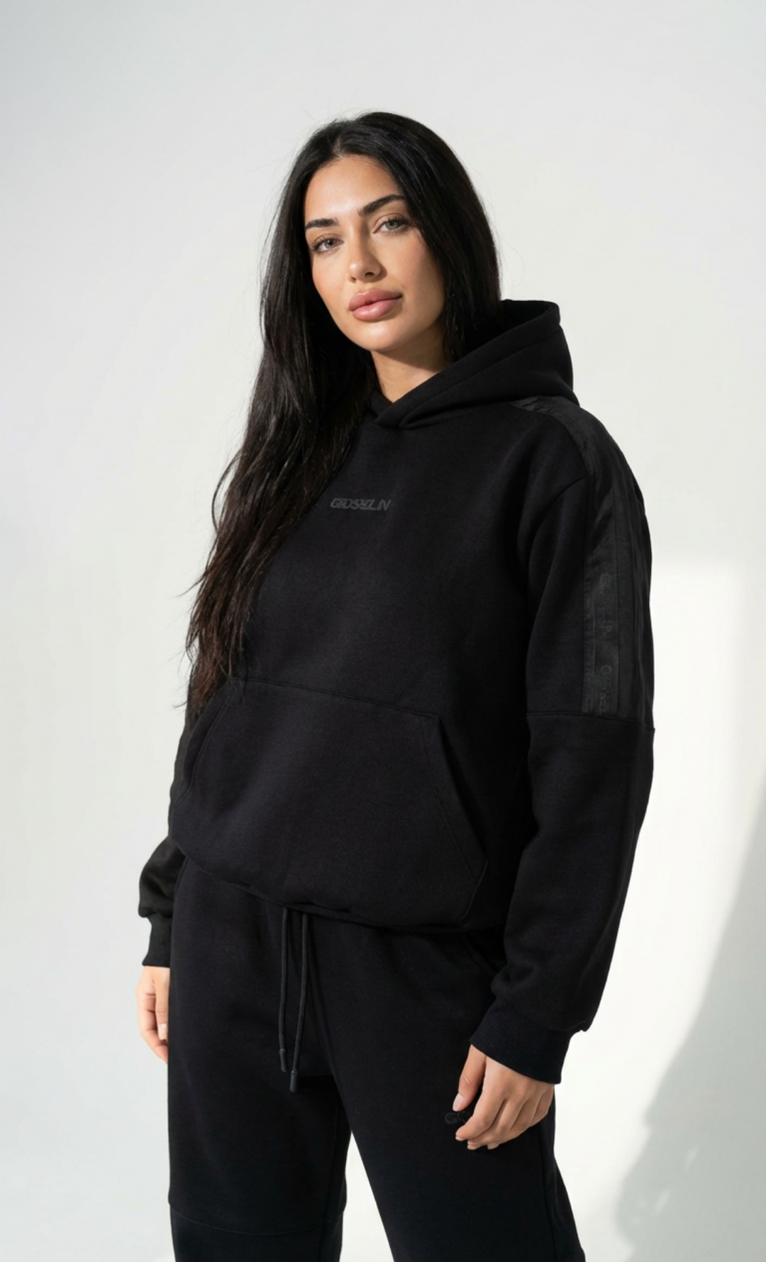 Il nero intenso, iconico e senza tempo, esalta l’anima street-luxury del capo, rendendolo estremamente versatile e adatto a qualsiasi occasione: dalla vita quotidiana al tempo libero, fino ai viaggi. La felpa con cappuccio, dal design essenziale, è arricchita da inserti a contrasto che donano profondità e personalità al look.