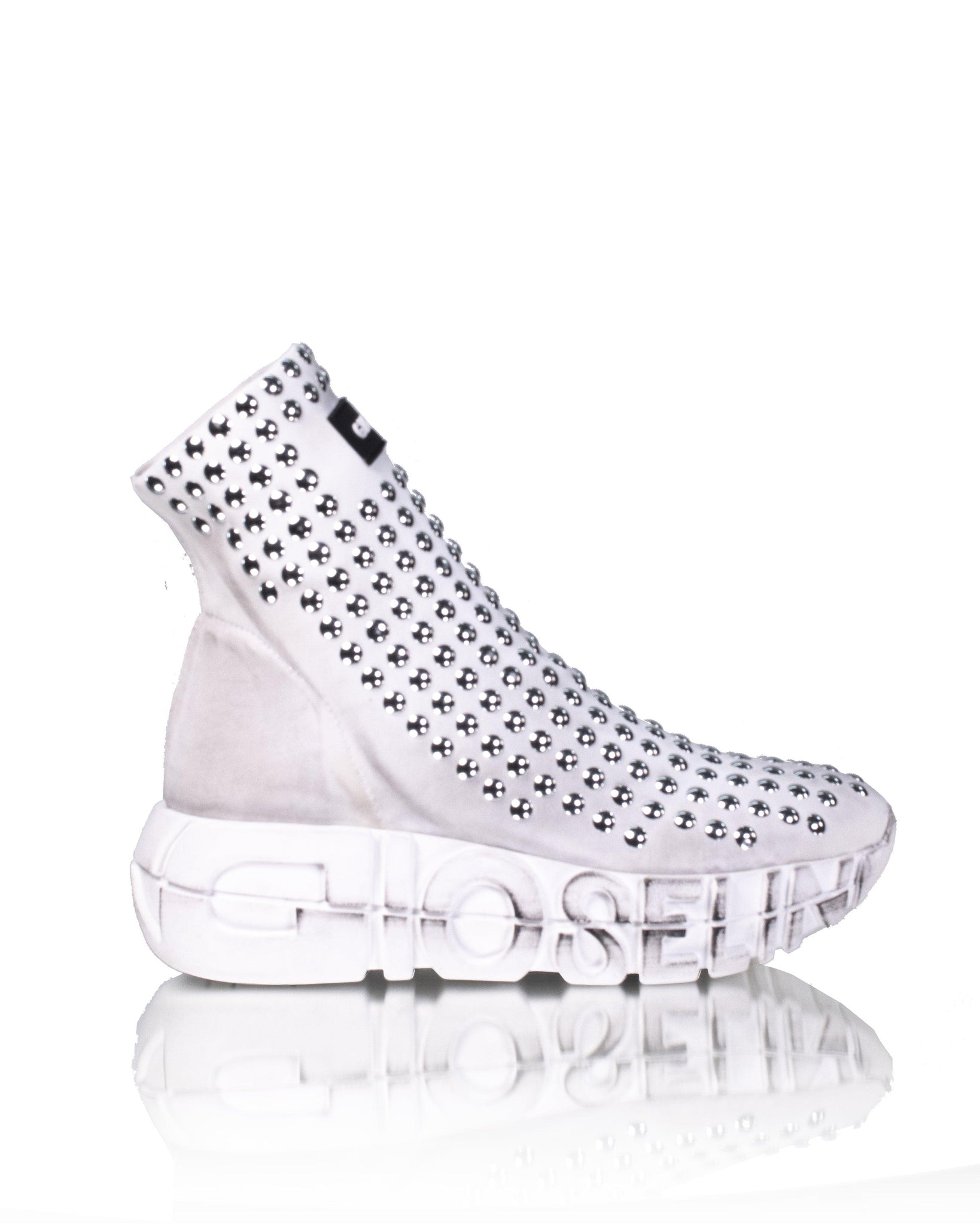 Questo modello leggero è un omaggio all'effetto vintage, perfetto per coloro che cercano uno stile che non passa mai di moda. Le borchie color argento aggiungono un tocco di personalità a queste sneakers, facendole risaltare tra la folla.